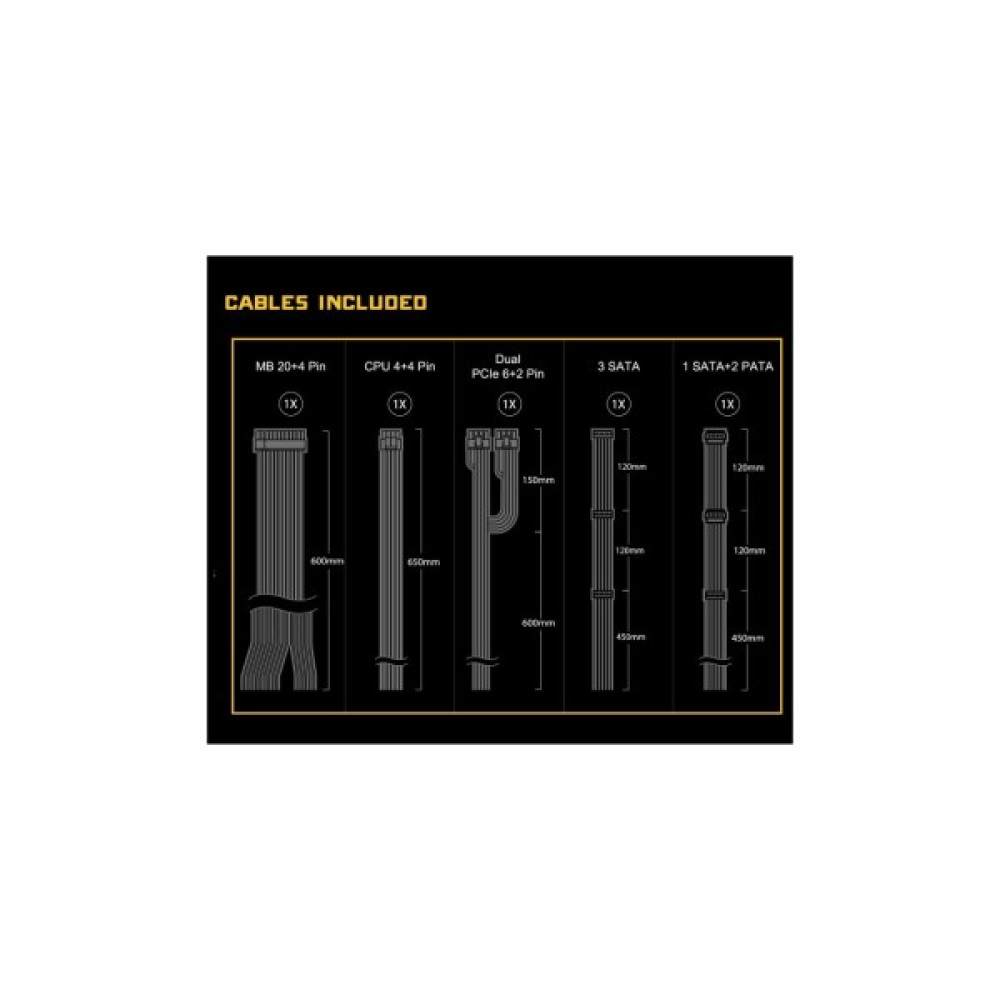 Однією з найважливіших особливостей цього блоку живлення є його потужність у 650 Вт, яка гарантує надійну підтримку всіх компонентів вашої системи. Сертифікація 80 PLUS Gold підкреслює його високу ефективність та енергозбереження, забезпечуючи оптимальний баланс між продуктивністю та споживанням енергії. Активний модуль PFC додатково гарантує зниження споживання електроенергії та поліпшення коефіцієнту потужності.