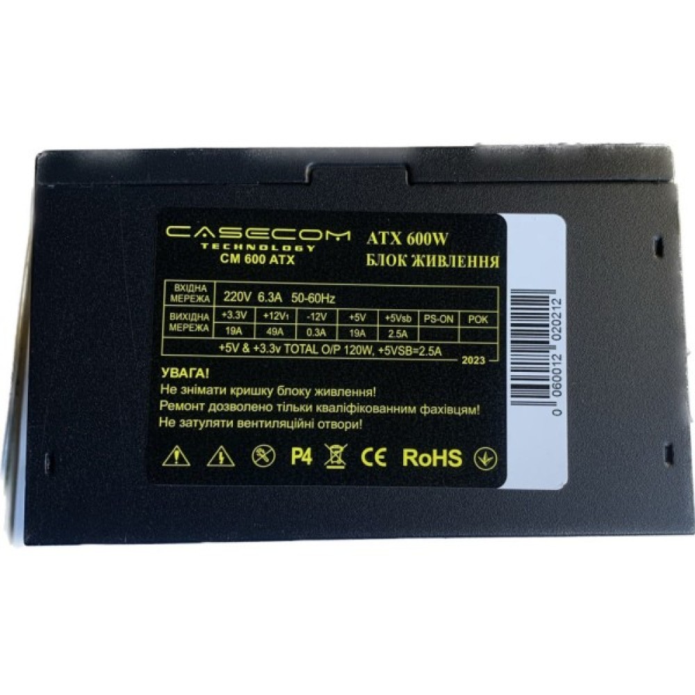 Casecom 600W (CM 600 ATX) — це поєднання надійності та оптимальної технічної оснащеності. Його висока ефективність та безпека роблять його ідеальним вибором для користувачів, які ставлять безпеку своєї техніки на перше місце, не жертвуючи при цьому продуктивністю.