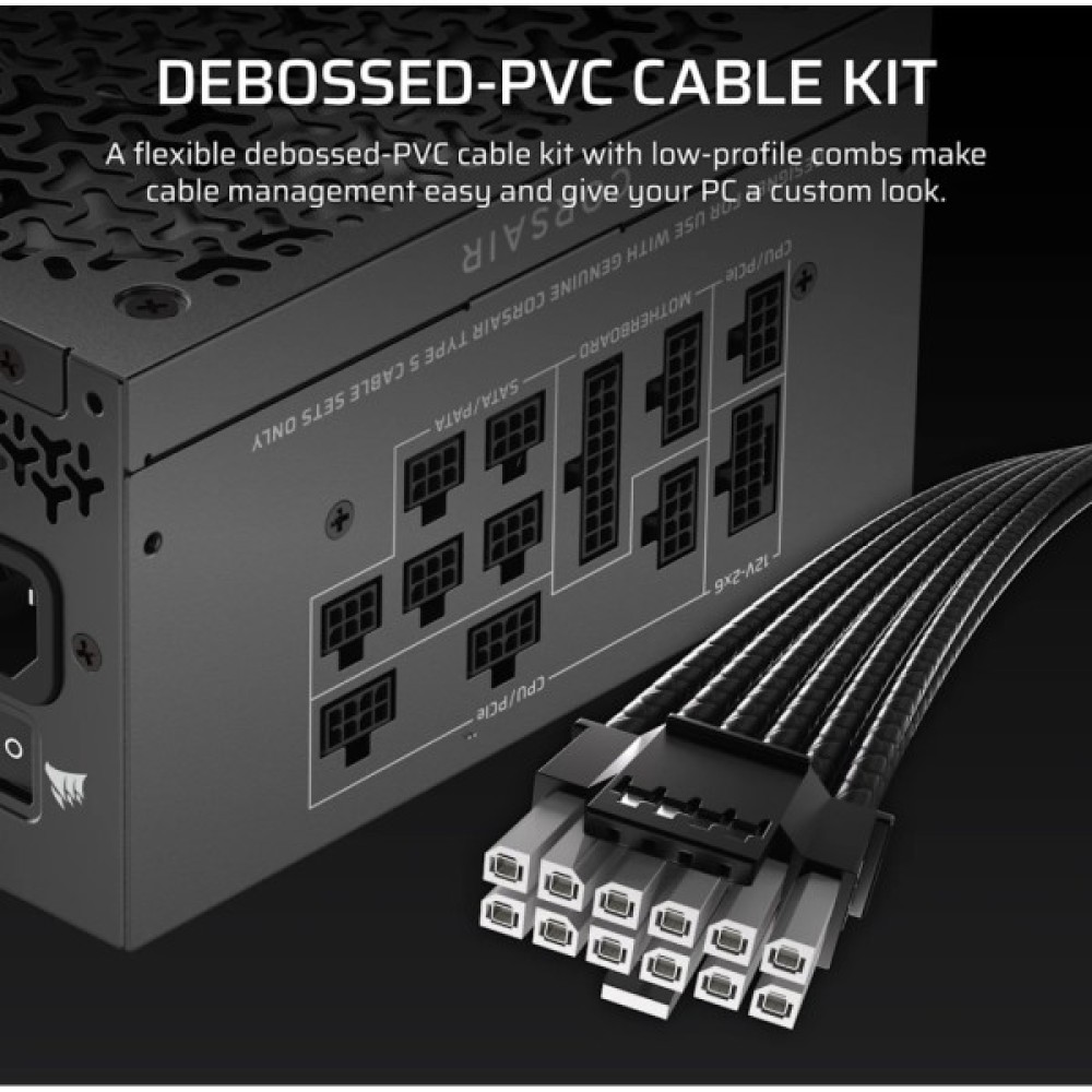 Кабелі блоку живлення CORSAIR типу 5 займають менше місця, що в поєднанні з модульною конструкцією спрощує організацію кабелів.
