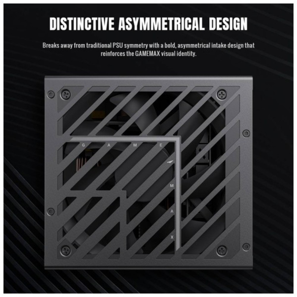 Асиметричний дизайн вирізняє блок живлення серед класичних моделей і додає системі стильного, сучасного вигляду. Вбудований 13,5 см турбо-вентилятор з низькими обертами та інтелектуальним режимом 0dB автоматично зупиняється за низьких температур, забезпечуючи майже безшумну роботу.