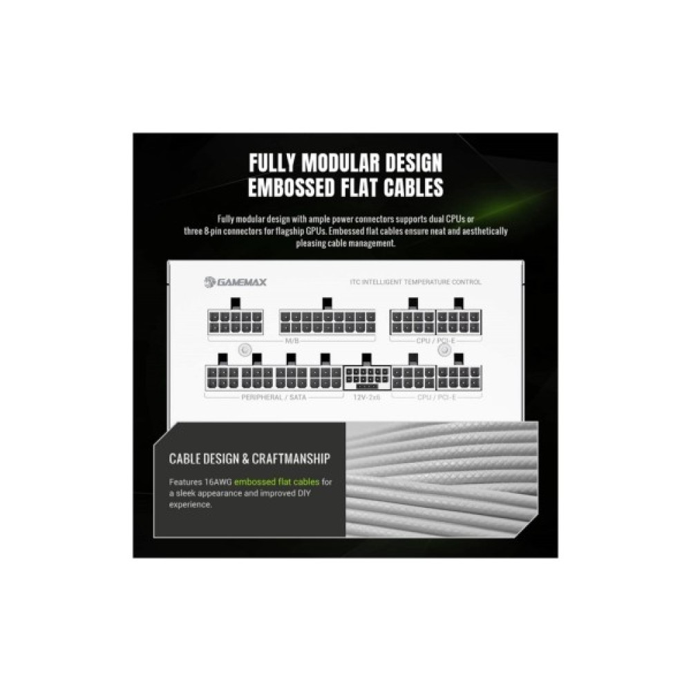 Завдяки своїм характеристикам та дизайну, блок живлення Gamemax 750W (GX PRO 750G WH) є ідеальним вибором для тих, хто шукає надійний та потужний компонент для своєї системи. Він гарантовано забезпечить високу продуктивність та стабільну роботу, відповідаючи найвищим стандартам якості та сучасним вимогам користувачів. Це інвестиція у продуктивність вашого ПК на довгі роки вперед.