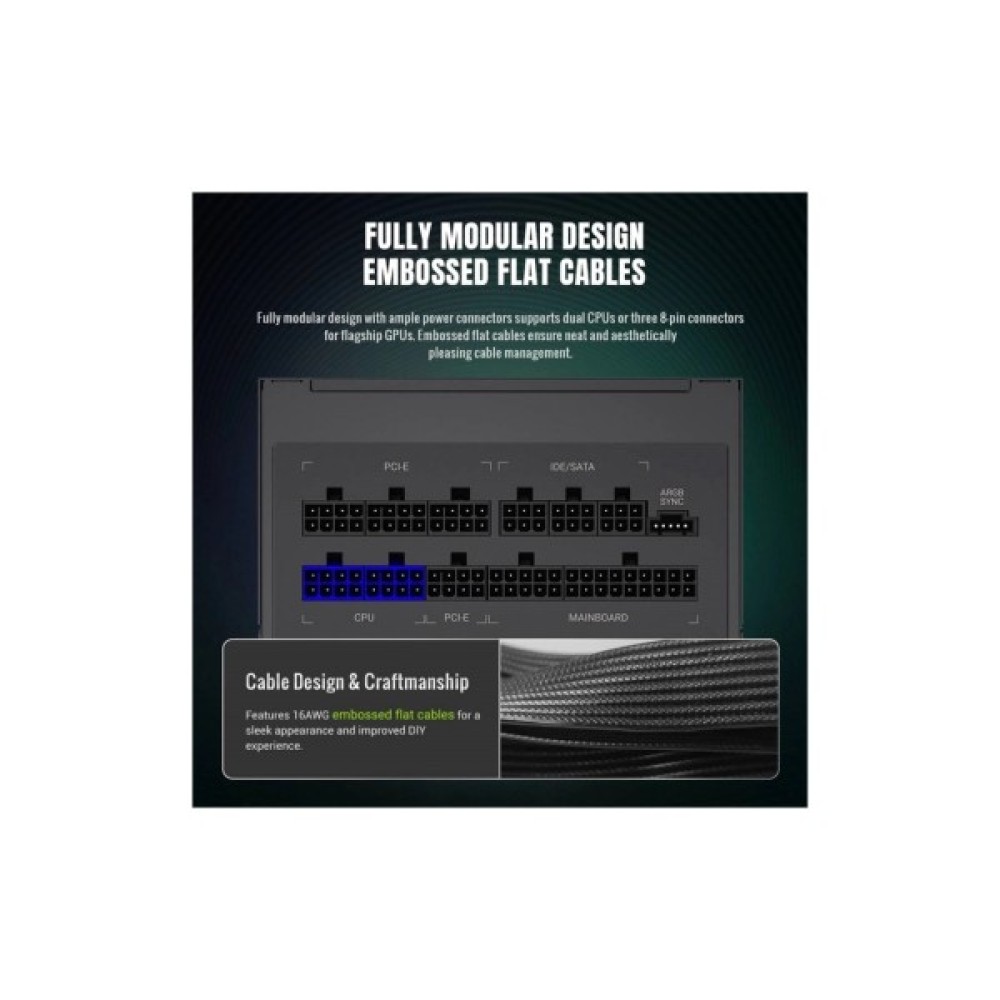 Активний модуль PFC гарантує стабільність напруги при її зміні, а використовувані японські конденсатори високої якості забезпечують довговічність та надійність і гарантують рівномірне живлення критично важливих компонентів, особливо ваших графічних процесорів. Потужна одинарна лінія +12 В забезпечує стабільний потік енергії до всіх компонентів комп'ютера, збільшуючи їх продуктивність та стабільність.