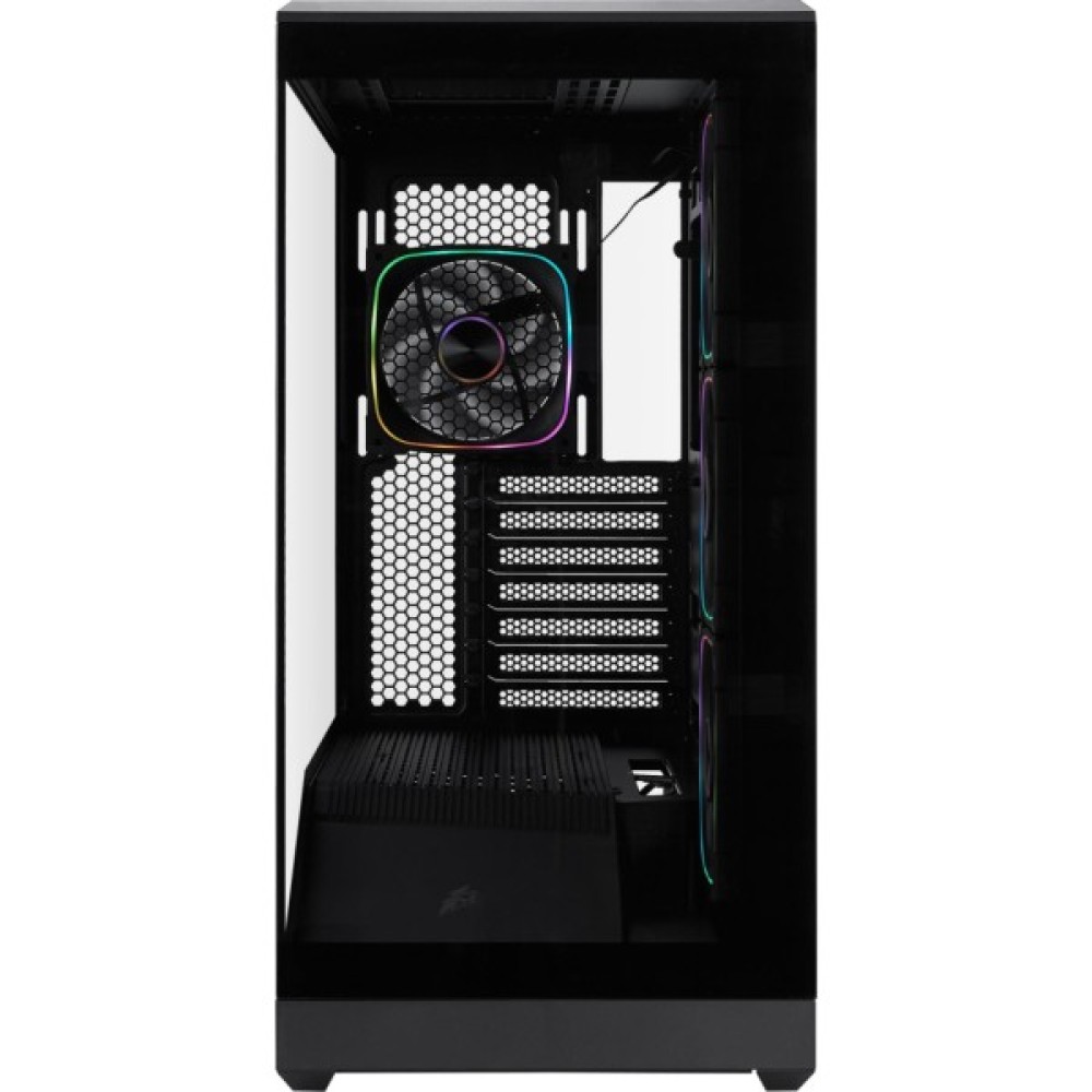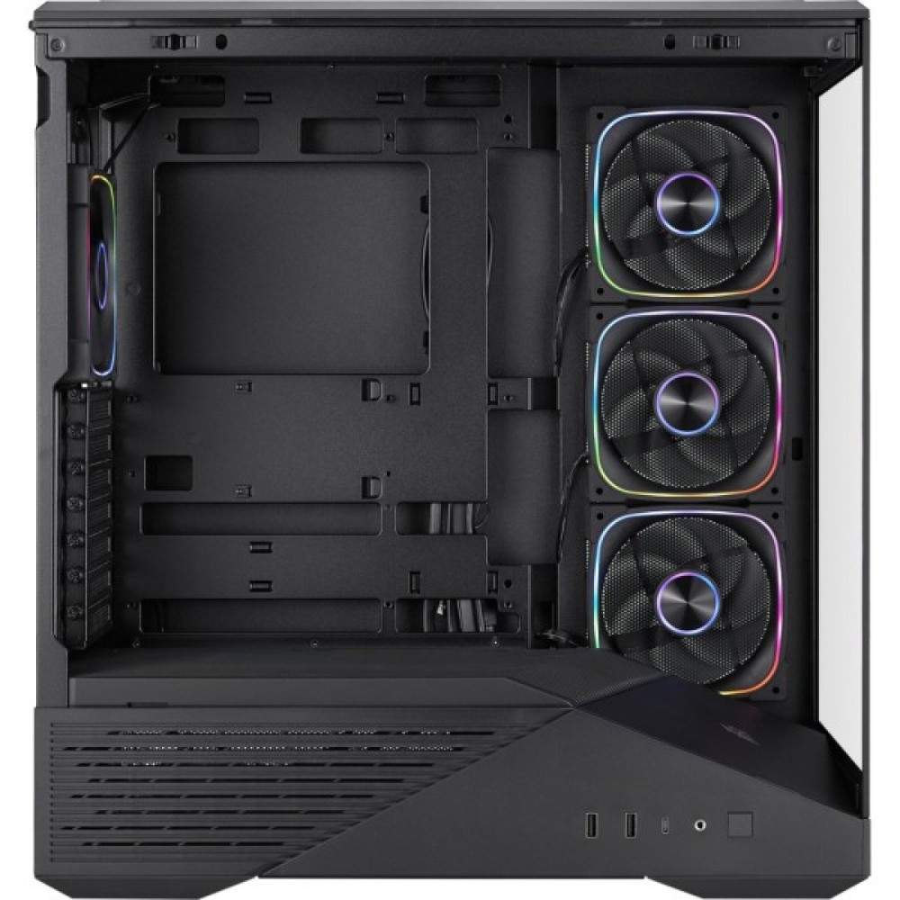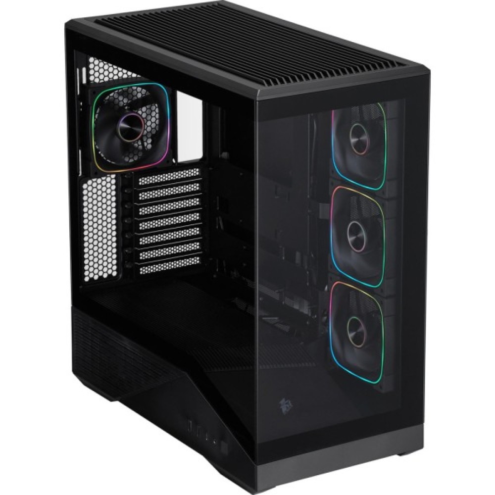 Корпус для ПК 1stPlayer GM7-BK-3FN7R-1FN7 Black є втіленням інноваційного дизайну та бездоганної функціональності. Цей корпус формату Miditower, створений спеціально для геймерів і професіоналів, пропонує оптимальне поєднання стильного вигляду і багатофункціональності. Захоплюючий панорамний огляд в 270° досягається завдяки використанню загартованого скла на передній і бічній панелях, що дозволяє насолоджуватися видом ваших внутрішніх компонентів без жодних перешкод.