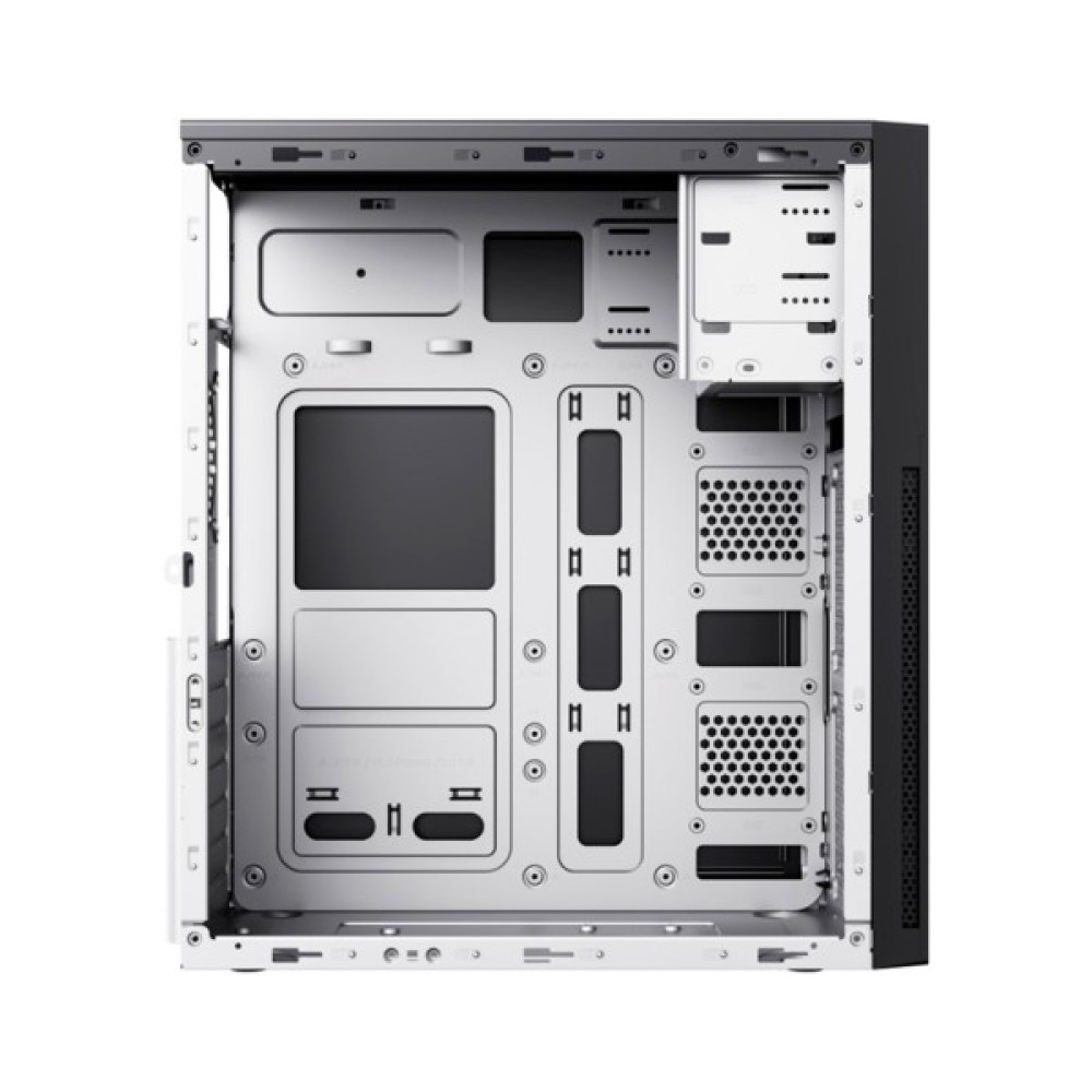 Однією з ключових переваг корпусу є його універсальність. Він забезпечує розмаїті можливості розміщення накопичувачів завдяки наявності двох зовнішніх відсіків розміром 5.25", одного зовнішнього та одного внутрішнього відсіку 3.5", а також трьох внутрішніх відсіків 2.5". Це дозволяє налаштувати систему під будь-які завдання, зокрема модернізацію та розширення можливостей зберігання даних.