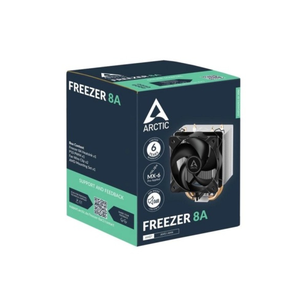 Arctic Freezer 8A — це компактний кулер для процесорів AMD, який є наступником популярного Freezer 7 X. Він призначений для ефективного охолодження CPU середнього та початкового рівня на платформах AM4 і AM5.