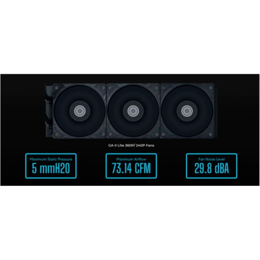 Lian-Li GA II Lite 240R — це надійна система водяного охолодження з радіатором і двома 120-мм ARGB вентиляторами. Вона призначена для охолодження процесора, забезпечення його стабільної роботи та ефективного відведення тепла. Швидкість обертання кулера досягає 2500 об/хв.