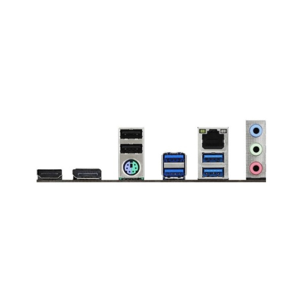 4 x USB 3.2 Gen1; 1 x RJ45; 2 x USB 2.0; 1 x PS/2; 1 x HDMI; 1 x DisplayPort; 3 x Audio