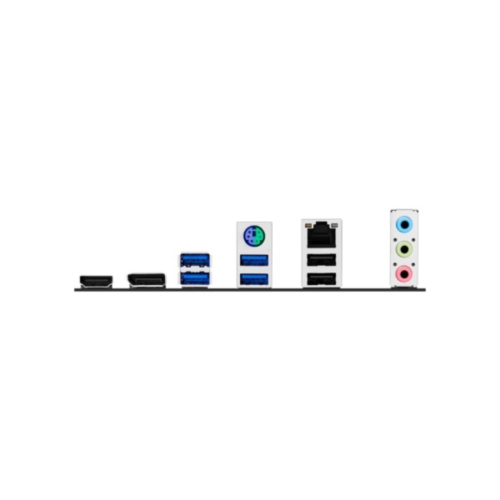 4 x USB 3.2 Gen 1; 2 x USB 2.0; 1 x PS/2; 1 x HDMI; 1 x DisplayPort; 3 x Audio