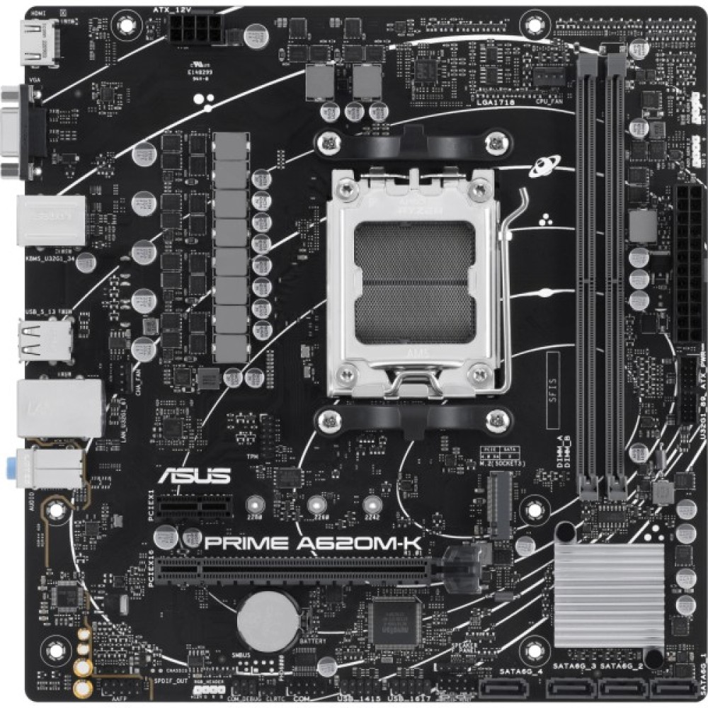 Материнська плата ASUS PRIME A620M-K є чудовим вибором для тих, хто прагне отримати максимум можливостей від свого комп'ютера. Ця плата створена спеціально для підтримки процесорів AMD Ryzen серії 7000, що забезпечує високу продуктивність і стабільність роботи. Вона відрізняється надійною конструкцією живлення та комплексними рішеннями для охолодження, що гарантує тривалий термін служби і стабільну роботу під навантаженням.
