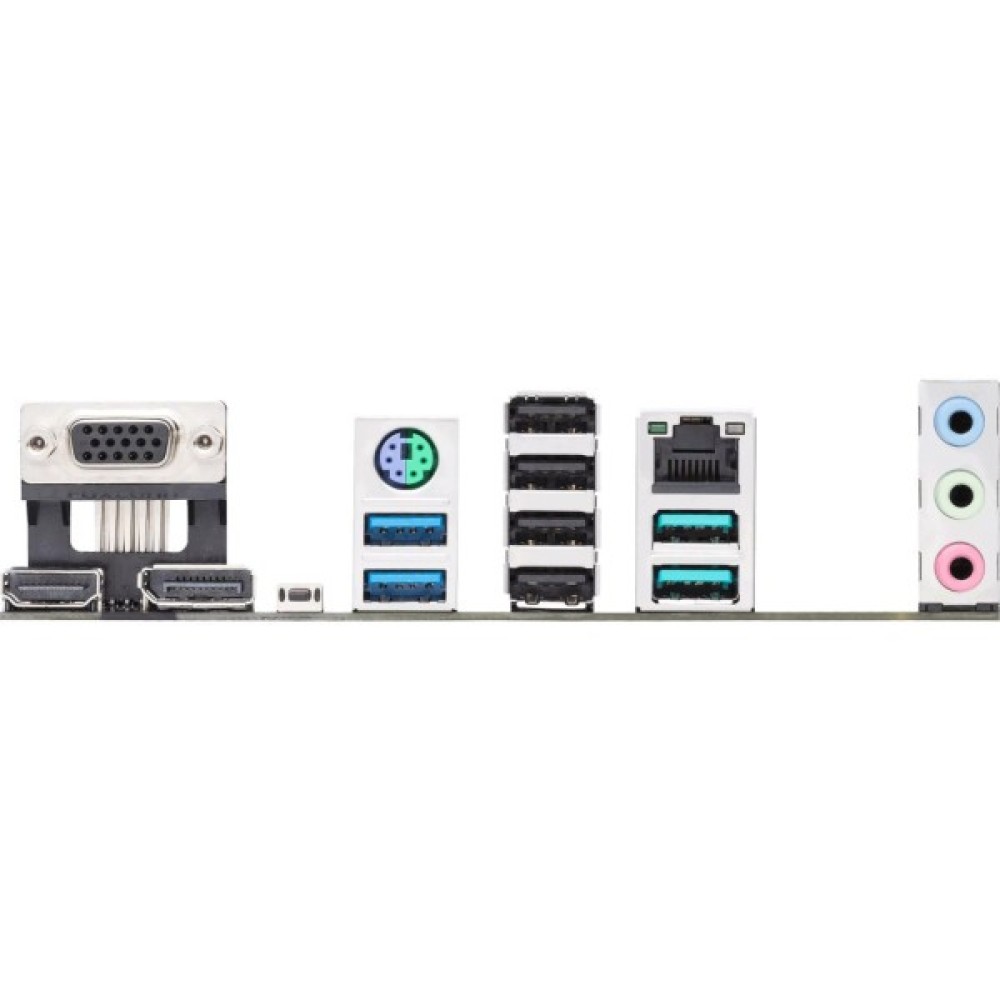 1 x VGA; 1 x BIOS FlashBack Button; 2 x USB 3.2 Gen 2 Type-A; 2 x USB 3.2 Gen 1 Type-A; 1 x RJ45; 4 x USB 2.0; 1 x PS/2; 1 x HDMI; 1 x DisplayPort; 3 x Audio