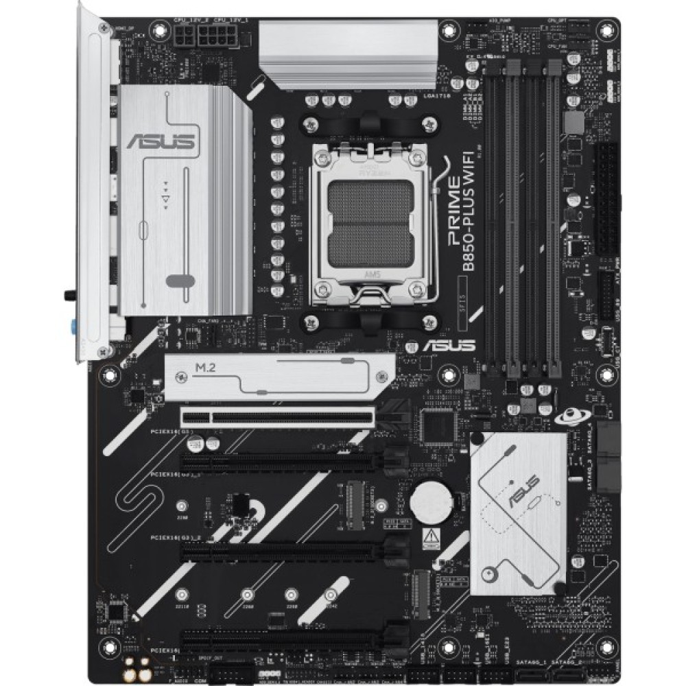 Материнська плата ASUS PRIME B850-PLUS WIFI — це безкомпромісний вибір для будь-якого користувача, який шукає стабільність, продуктивність і широкий функціонал в одному комплекті. Спроектована для підтримки процесорів AMD Ryzen 9000-ї серії на новітньому чіпсеті AMD B850, вона готова вражати не лише потужністю, але й універсальністю у щоденному використанні.