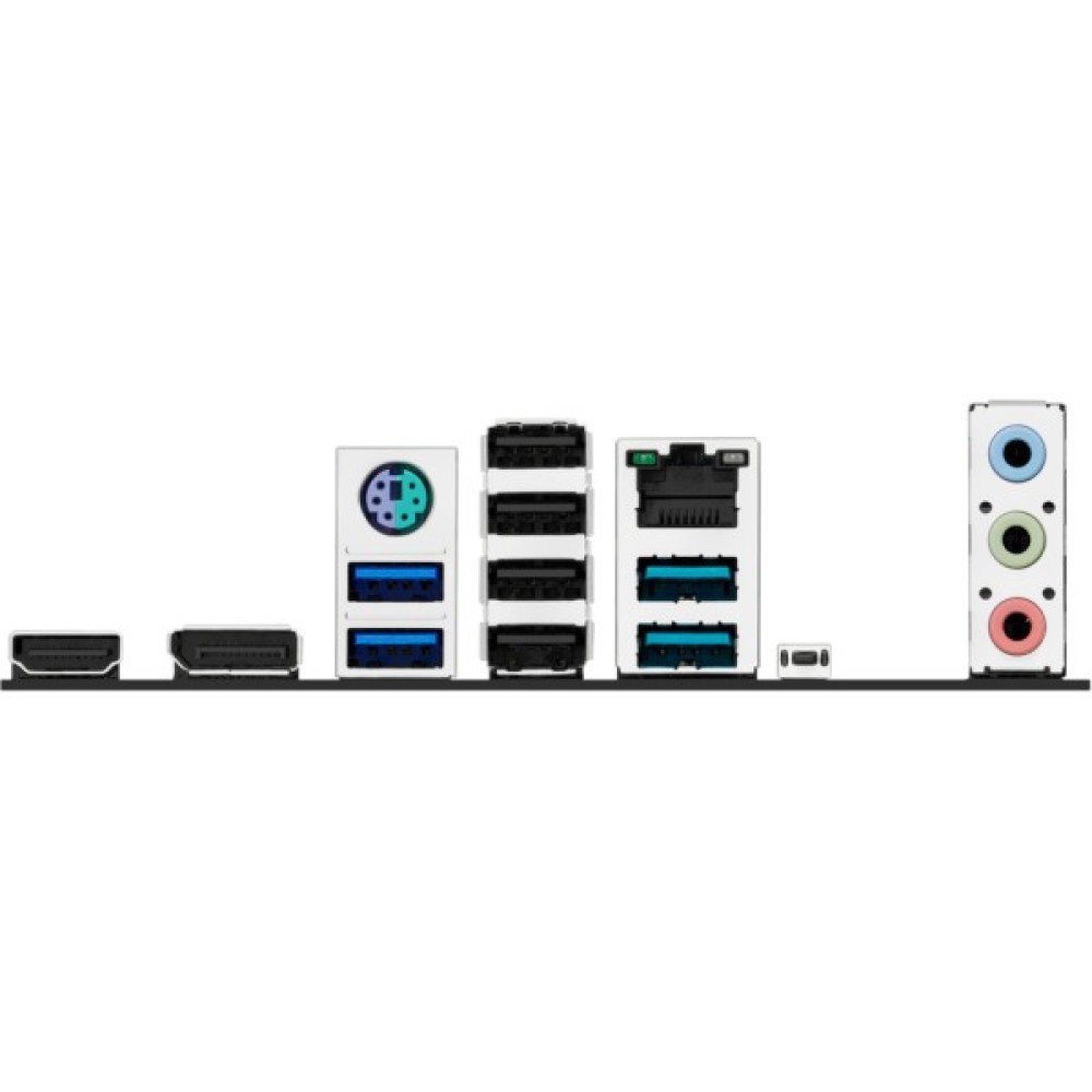 1 x BIOS FlashBack Button; 2 x USB 5Gbps ports (2 x Type-A); 2 x USB 10Gbps port (2 x Type-A); 1 x RJ45; 4 x USB 2.0; 1 x PS/2; 1 x HDMI; 1 x DisplayPort; 3 x Audio