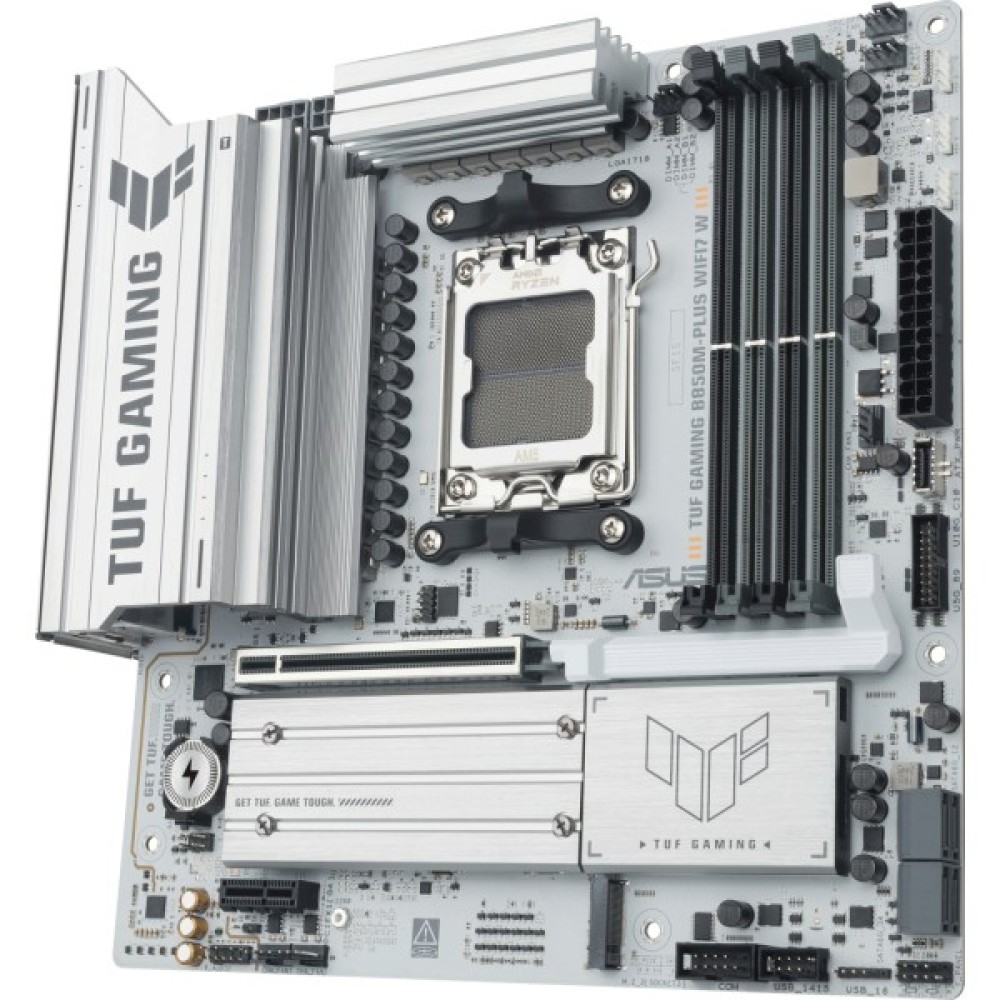 ASUS TUF GAMING B850M-PLUS WIFI7 W є не просто платформою для побудови комп'ютера, це основа для вашого захоплення і віра у свої можливості. Це справжній вибір для тих, хто шукає потужність, надійність та високотехнологічні рішення в одному пристрої.