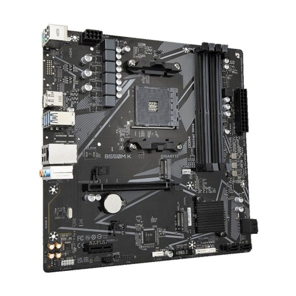 Материнська плата GIGABYTE B550M K - це ідеальний вибір для тих, хто шукає надійний та високопродуктивний компонент для свого ПК середнього розміру. Завдяки форм-фактору Micro-ATX, вона підходить для комп'ютерів, де важливі компактність і функціональність, не втрачаючи при цьому в потужності та можливостях розширення.