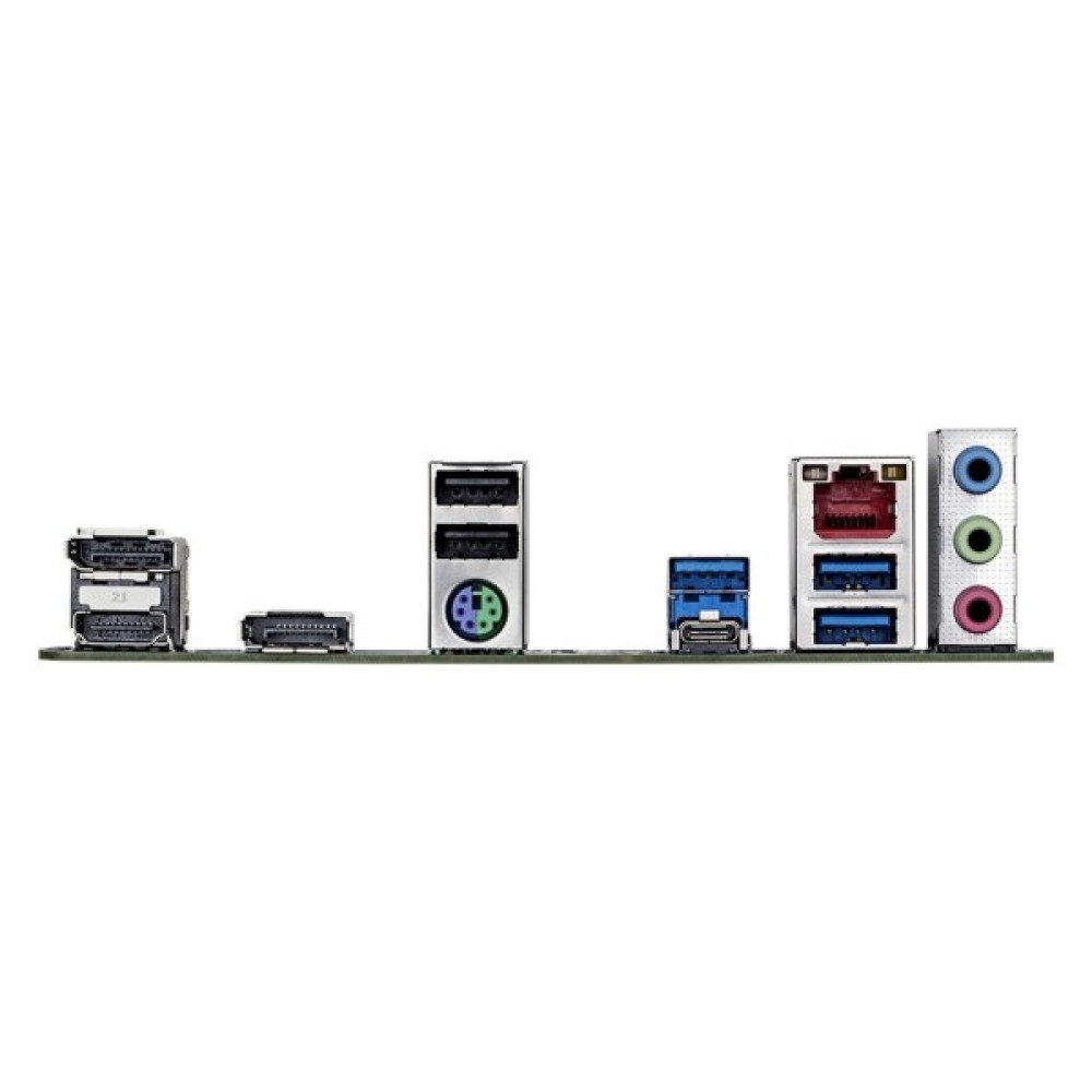 1 x USB 3.2 Gen2 Type-C; 3 x USB 3.2 Gen 1; 1 x RJ45; 2 x USB 2.0; 1 x PS/2; 1 x HDMI; 1 x DisplayPort; 3 x Audio