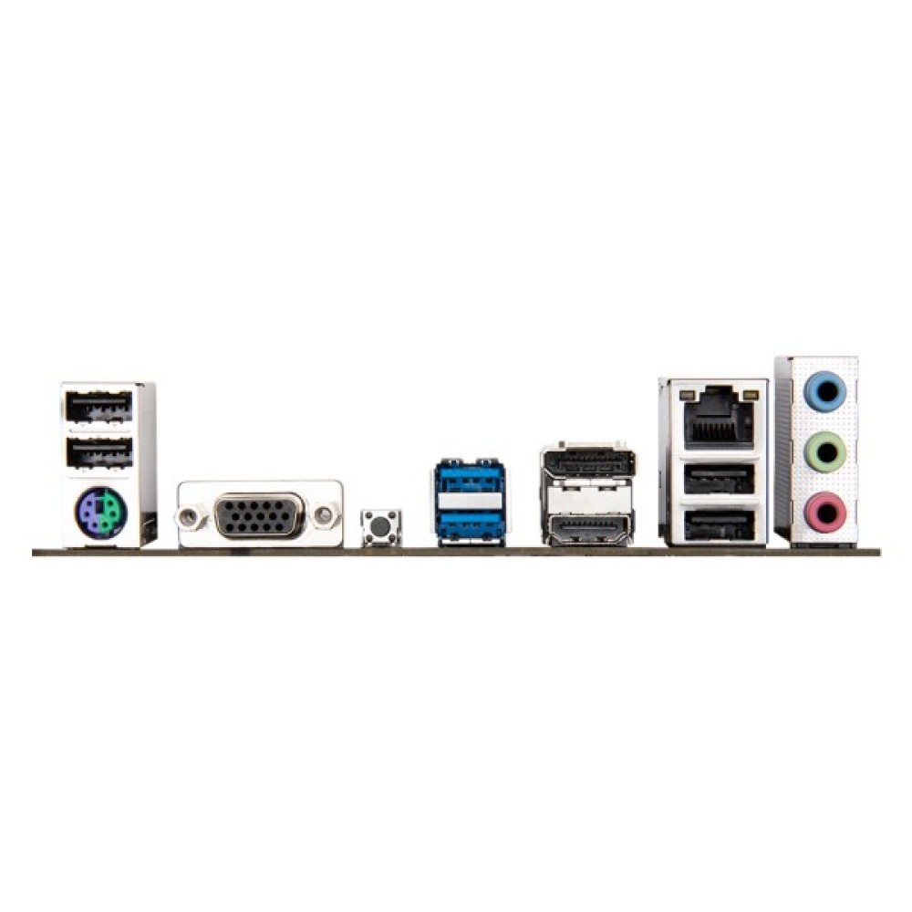 1 x VGA; 1 x Q-Flash Plus button; 2 x USB 3.2 Gen 1; 1 x RJ45; 4 x USB 2.0; 1 x PS/2; 1 x HDMI; 1 x DisplayPort; 3 x Audio