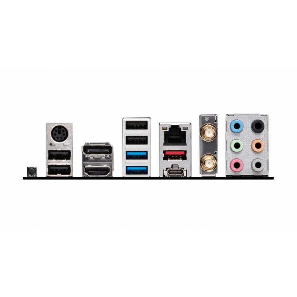 Зовнішні порти 1 x Flash BIOS Button; 2 x USB 3.2 Gen 1 Type-A; 1 x USB 3.2 Gen 2x2 Type-C; Wi-Fi / Bluetooth Antenna; 1 x USB 3.2 Gen 2 10Gbps (Type-A); 1 x RJ45; 4 x USB 2.0; 1 x PS/2; 1 x HDMI; 1 x DisplayPort; 6 x Audio