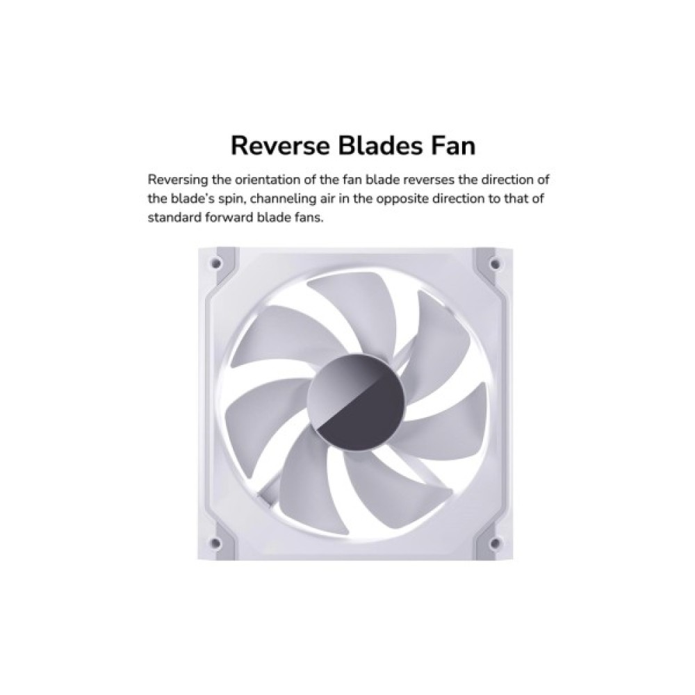 Унікальна конструкція зворотних лопатей змінює напрямок обертання вентилятора, спрямовуючи повітряний потік у протилежному напрямку порівняно зі стандартними вентиляторами. Це дозволяє гнучко налаштовувати охолодження залежно від потреб вашої системи, забезпечуючи ефективне відведення тепла навіть у складних конфігураціях.