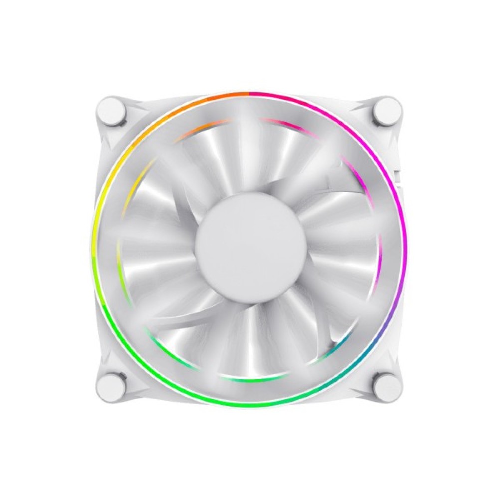 Вентилятор для охолодження "заліза" ПК від компанії Gamemax. Призначений для охолодження "начиння", шляхом видування гарячого повітря. Вентилятор оснащений RGB-підсвіткою, яка знаходиться у двох колах, розміщених над кулером.