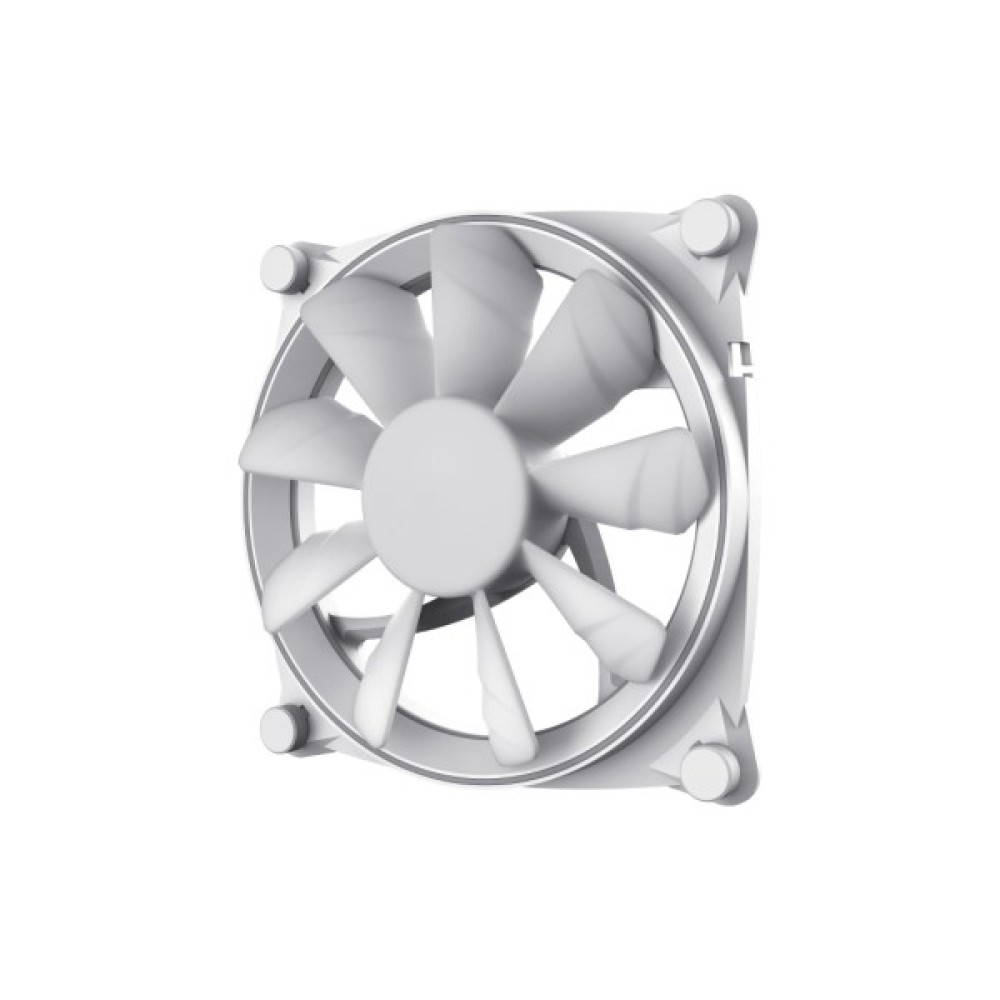 Вентилятор має широкі лопаті, які захоплюють велику кількість гарячого повітря. Виготовлений кулер зі зносостійкого пластику. Рамка та лопаті виконані в білому кольорі. Підсвітка не тільки підсилює дизайн пристрою, але і виконує освітлювальну функцію, коли користувач працюватиме чи гратиме в темний час доби.