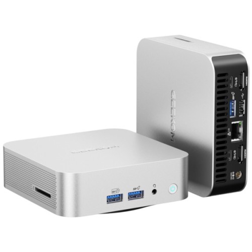 Міні-ПК GEEKOM A6 має компактні розміри 112.4 × 112.4 × 37 мм і стильний портативний корпус, який займає мінімум місця на столі. Корпус виконано з алюмінієвого сплаву, а дизайн виглядає сучасно та привабливо.