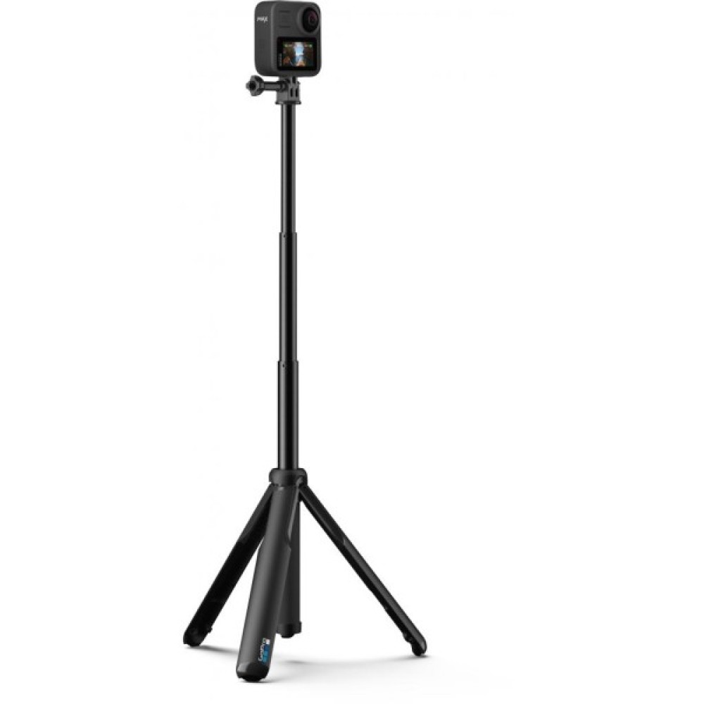 Зафіксуйте сцену цілком завдяки рукоятці + штатива Max. Це універсальне кріплення спеціально розроблено для зйомки сферичних матеріалів без попадання рукоятки в кадр. Воно також сумісний з усіма іншими камерами GoPro. Використовуйте його в якості рукоятки камери, розсувного монопода або швидкоз'ємного штатива, щоб швидко компонувати кадри і змінювати ракурси.