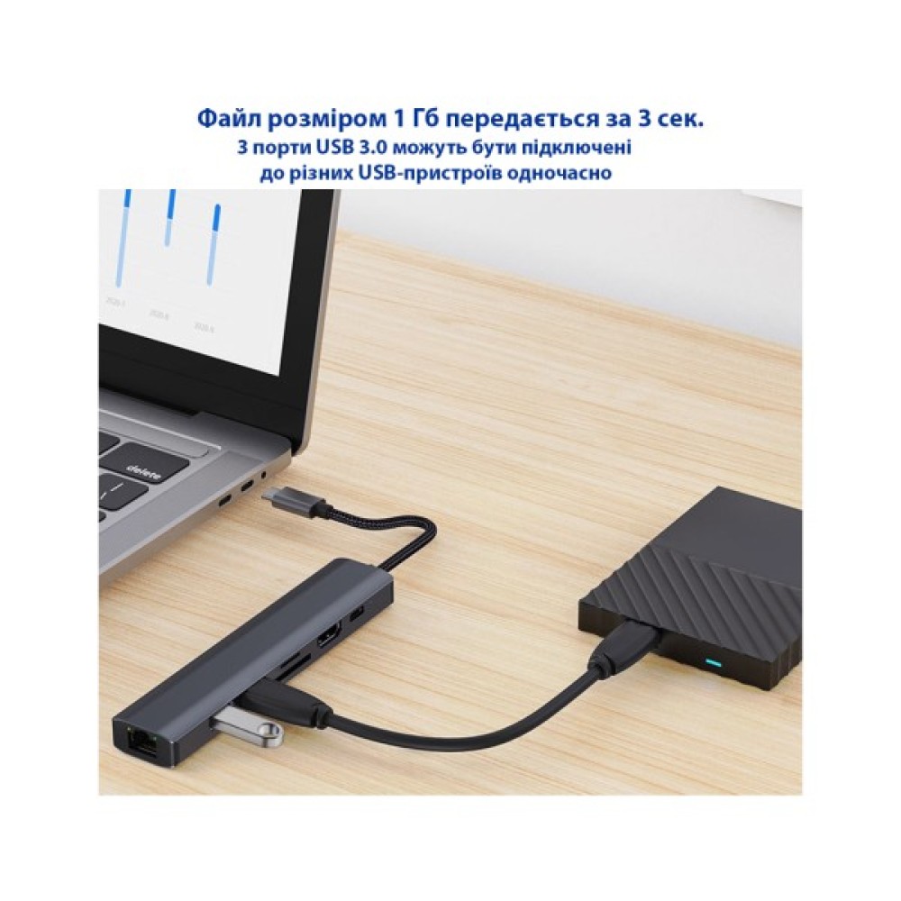 Модель 7-in-1 USB-C to HDTV 4K/30Hz, 2хUSB3.0, RJ45, USB-