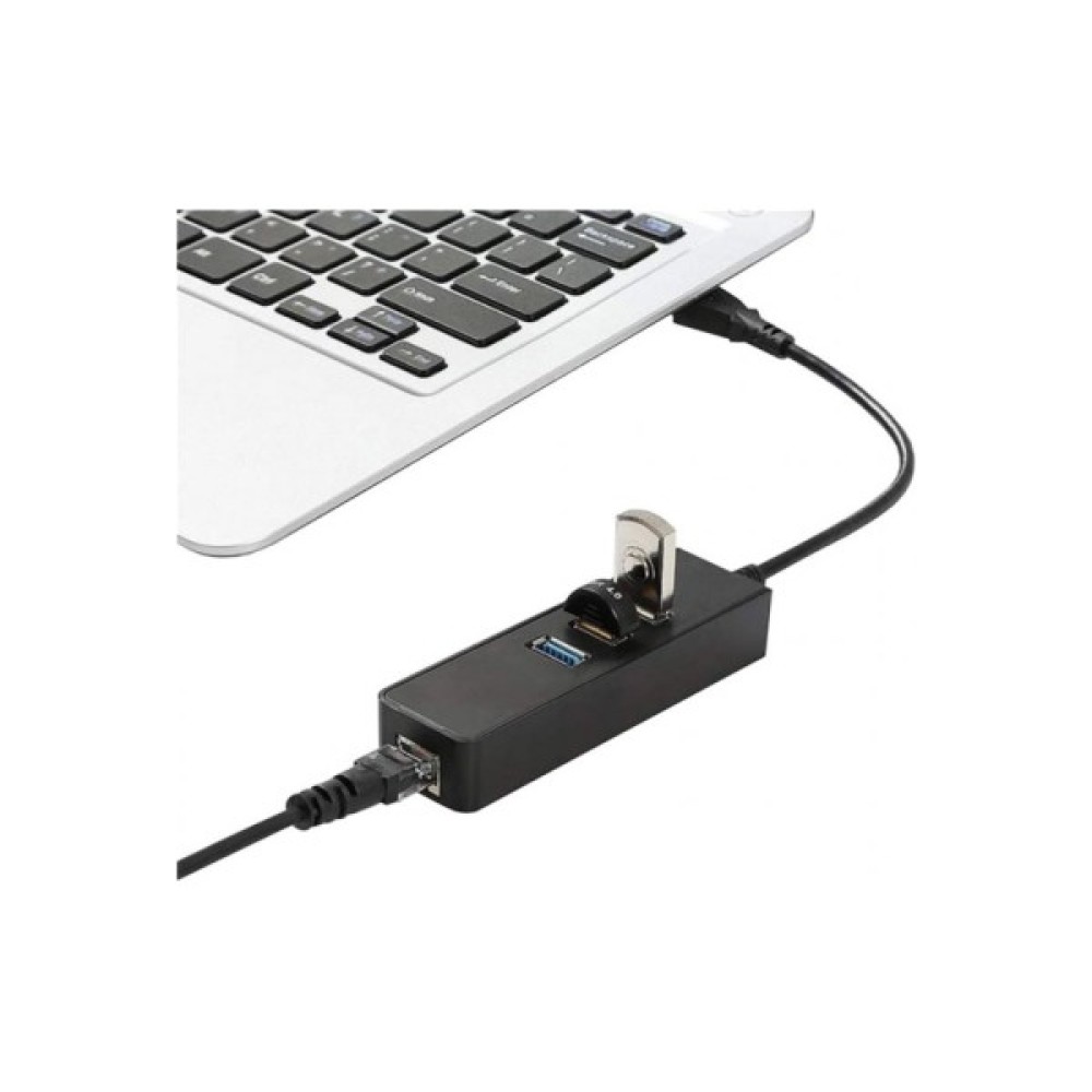 Адаптер Dynamode USB 3.0 - RJ45 Gigabit Lan 10/100/1000 Мбіт / с з 3-х портовим хабом USB 3.0 призначений для підключення домашнього ПК або ноутбука до локальної провідної мережі Ethernet через вільний порт USB стандарту Type-A. Адаптер USB3.0-Type-A-RJ45-HUB3 є багатофункціональним аксесуаром і призначений для одночасного підключення до трьох періфейних пристроїв з інтерфейсом USB 3.0, також він сумісний з пристроями USB 2.0 / USB 1.1. Ви зможете підключити через нього пристрої зовнішнього зберігання даних, USB-флешки, зовнішній жорсткий диск, клавіатуру, миша, цифрову або відеокамеру спостереження, мережеві пристрої, принтер, багатоканальні аудіо, а також будь-які інші пристрої USB до вашого ноутбука.