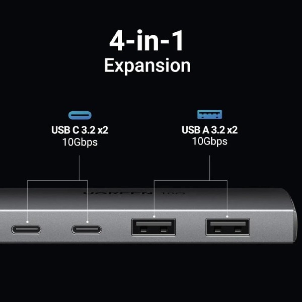 Миттєве розширення можливостей Розширте пристрій із роз'ємом Type-C, щоб підключати більше пристроїв. Хаб Ugreen USB-C 4-в-1 оснащений 2 портами USB Type-C та 2 портами USB. Усі порти можуть працювати одночасно, маленькі, але сильні. Надшвидка передача даних Цей хаб USB-C додає 4 додаткові порти для підключення декількох периферійних USB-пристроїв, таких як флеш-накопичувач, жорсткий диск, клавіатура, миша, принтер, MP3-плеєр та багато іншого. Багатопортовий хаб може позбавити вас проблем, пов'язаних з повторним підключенням і відключенням. Підтримує надшвидку передачу даних до 10 Гбіт/с, що дозволяє передавати фільми або файли HD за лічені секунди.