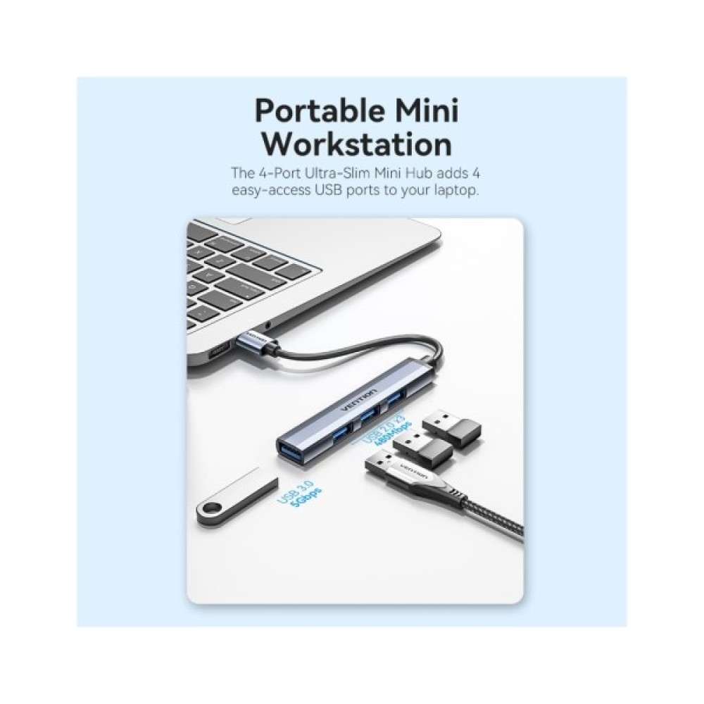 Концентратор Vention USB 3.0 to 1xUSB 3.0 + 3xUSB 2.0 0.15m gray (CKOHB)