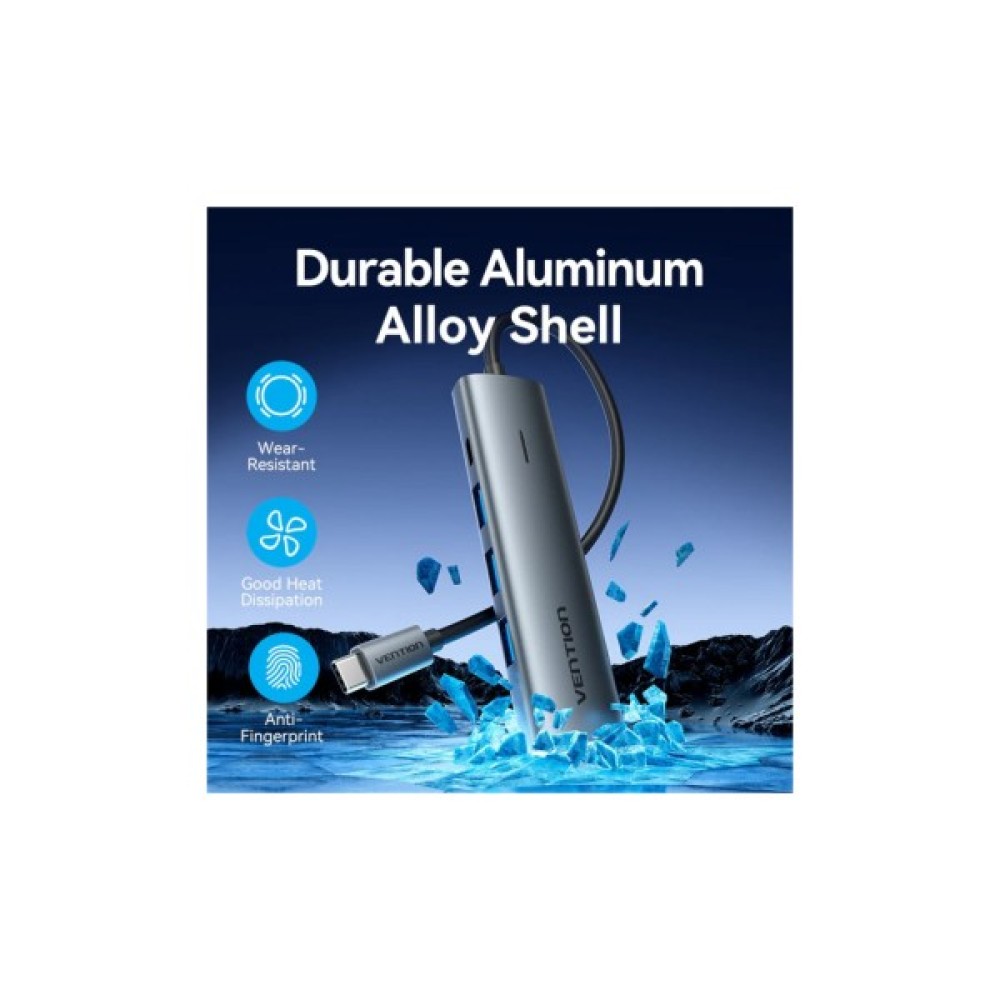 Концентратор Vention USB-C to 4xUSB 3.0 + 1xUSB-C black (TGZHB)