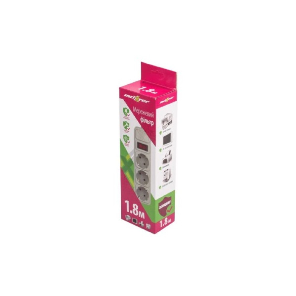 Мережевий фільтр живлення Maxxter SPM3-G-6G серый 1.8 м кабель, 3 розетки (SPM3-G-6G) захистить комп'ютерна та офісну техніку від перешкод, перевантажень і короткого замикання. Корпус виконаний з ударостійкого пластику і має мережевий кабель і вилку євростандарту, а також 3 універсальних розетки c заземленням (Euro / Rus). На фільтр і встановлено світлодіодний вимикач і є отвір для кріплення до стіни. Фільтр гарантує миттєву реакцію на коротке замикання і перевищення максимально допустиме потужності.