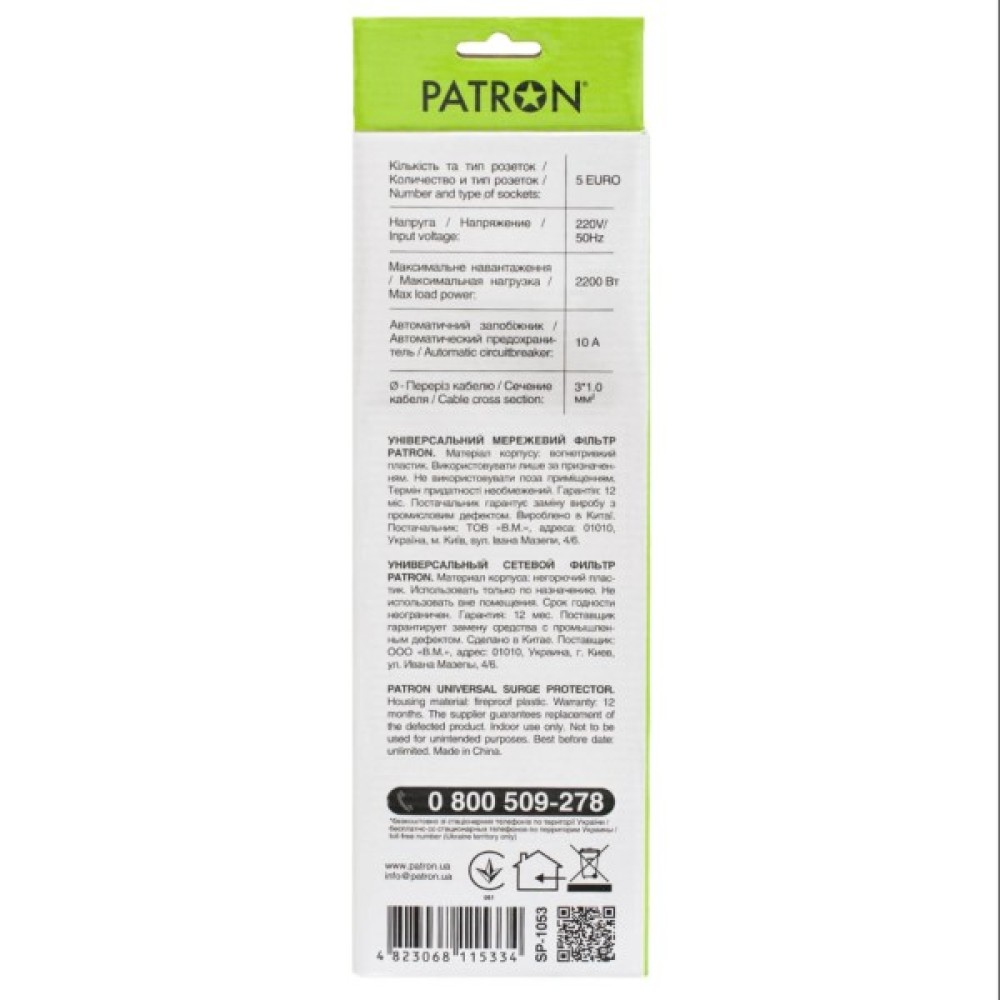Мережевий фільтр живлення Patron 3.0 m3*1mm2 (SP-1053) 5 розеток BLACK (EXT-PN-SP-1053)