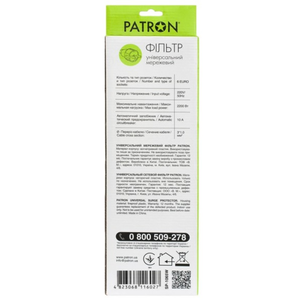 Поєднання надійності, функціональності та естетичності робить мережевий фільтр Patron 5m (SP-1065W) ідеальним вибором для тих, хто цінує якість і безпеку в одному пристрої. Не пропустіть можливість забезпечити свої пристрої надійним джерелом живлення з цим високоякісним продуктом від Patron.