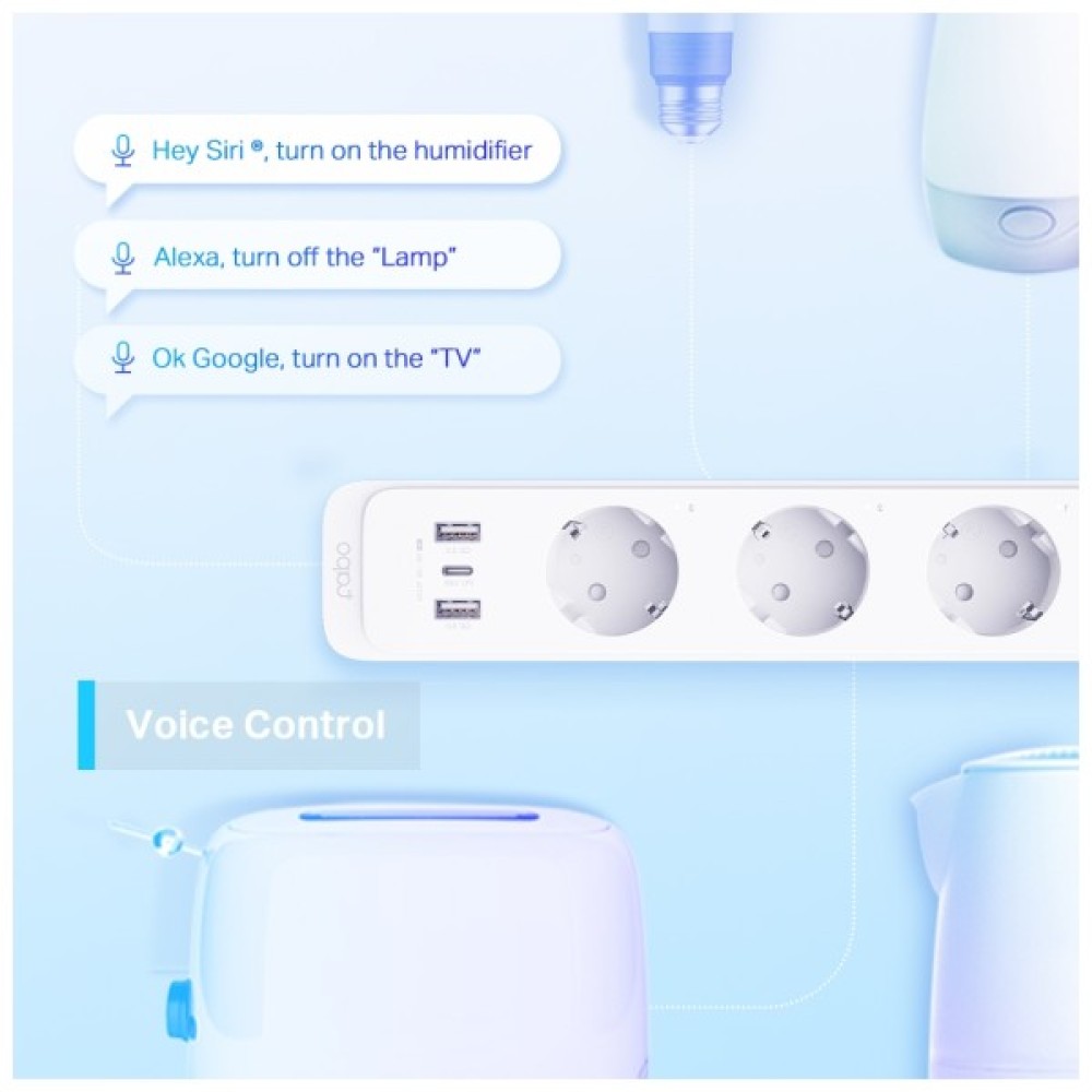 - Індивідуальний контроль - Окремо керуйте 3 розумними розетками на подовжувачі за допомогою програми або голосових команд.