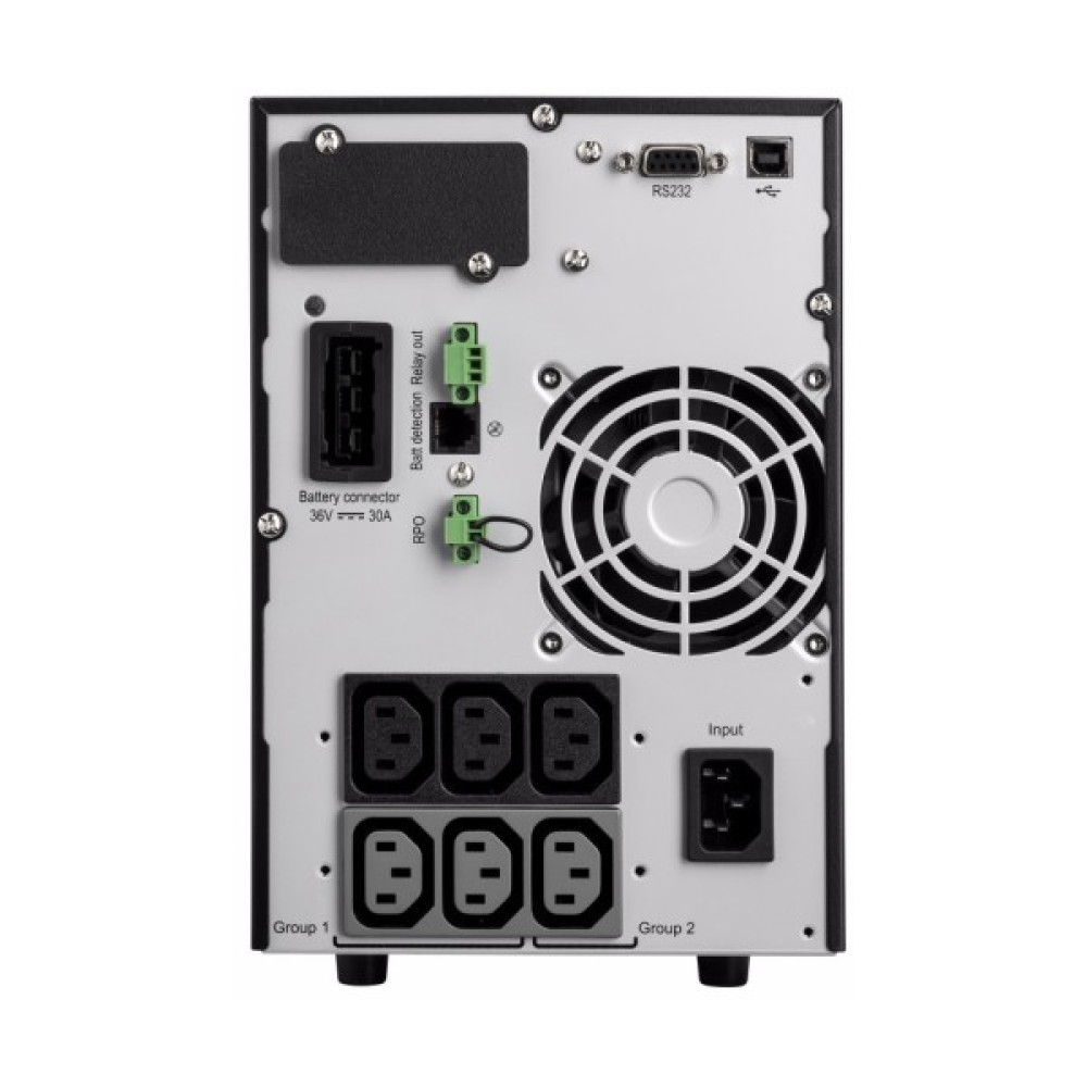 Інтерфейс підключення через USB та RS-232 дозволяє легко інтегрувати пристрій з іншими системами, а інтуїтивно зрозумілий РК-дисплей робить управління ДБЖ простим та ефективним. Великим плюсом цієї моделі є можливість "гарячої" заміни батарей, що дозволяє здійснювати обслуговування без припинення роботи всієї системи.