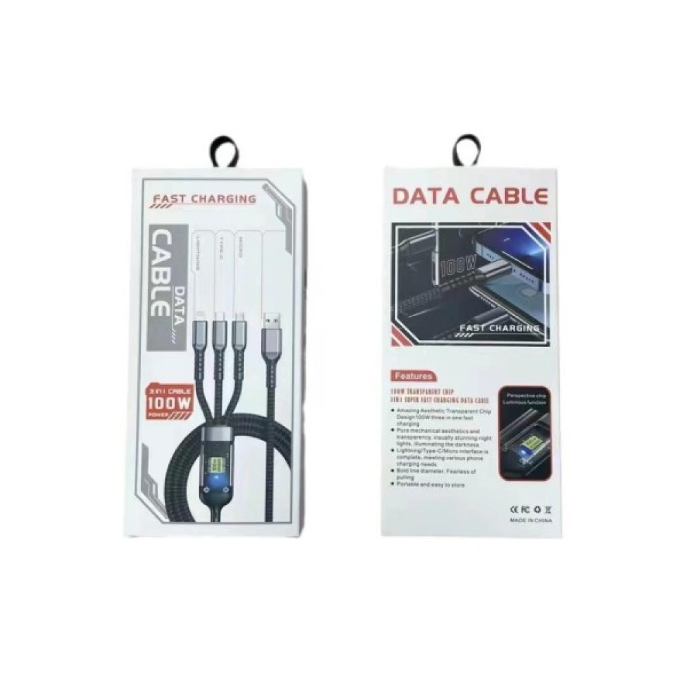 USB кабель 3 в 1 XOKO SC-3100 100W Кабель з трьома різними роз’ємами (Lightning, Micro-USB, Type-C) дозволяє заряджати кілька пристроїв без необхідності носити з собою кілька кабелів.