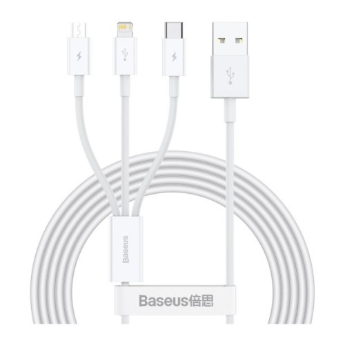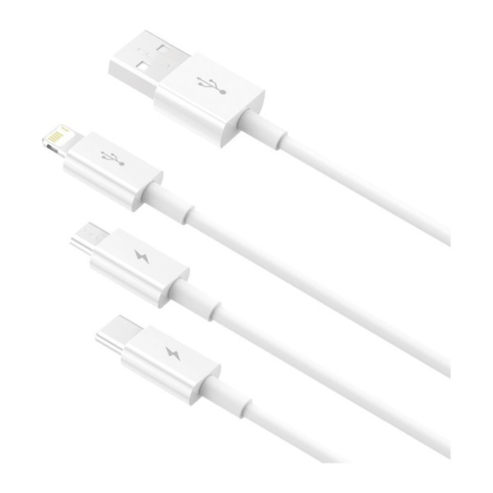 Дата кабель USB 2.0 AM to Lightning + Micro 5P + USB-C 1.5m 3.5A white Baseus (CAMLTYS-02)