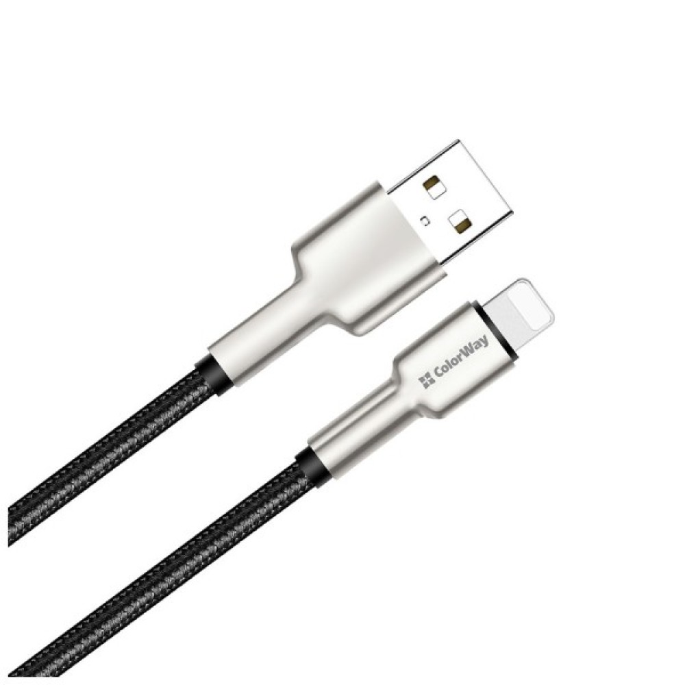 Дата кабель USB 2.0 AM to Lightning 1.0m head metal black ColorWay (CW-CBUL046-BK)
