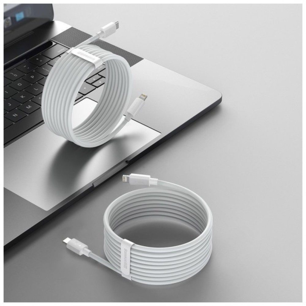 Baseus Simple Wisdom Data Cable Kit USB to iP PD 20W (2 PCS / Set) 1.5 м White ─ набір з 2 кабелів для заряджання акумулятора, передачі даних та синхронізації мобільних пристроїв з роз'ємами Lightning та Type-C. Кабелі Simple Wisdom підтримують протоколи швидкого заряджання, потужність до 20 Вт та передачу даних, швидкість якої досягає до 480 Мбіт/с. З цими параметрами заряджання та синхронізація пристрою потребують мінімальних витрат часу.