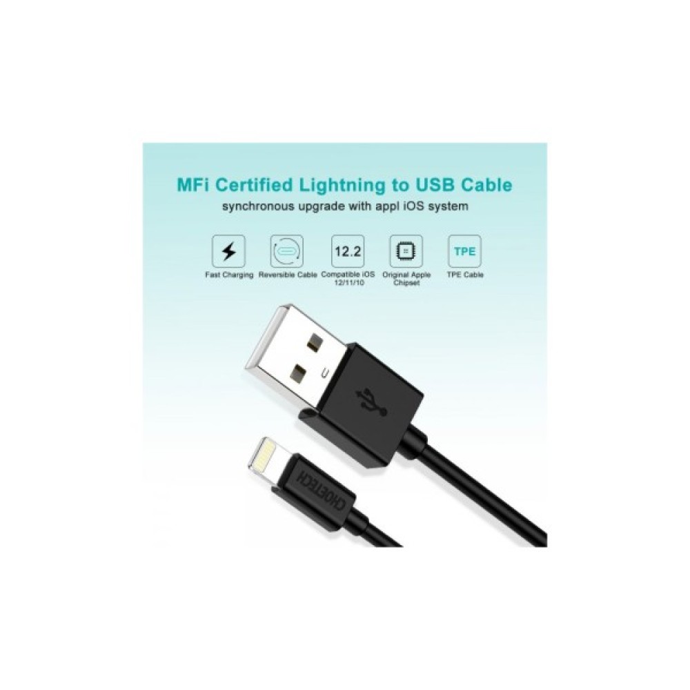 Кабель Lightning від компанії Choetech. Призначений для зарядки гаджетів Apple і передачі даних. Підходить для підключення мобільної техніки до ноутбуків, мережевих пристроїв, повербанків. Дозволить відновлювати енергію акумуляторних батарей і ділитися різноманітною інформацією між різними пристроями.