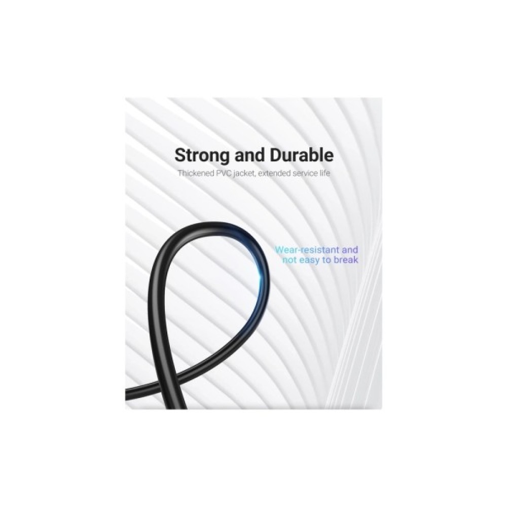 • Міцна та гнучка конструкція: Зовнішня частина покрита високоякісною оболонкою з ПВХ, яка забезпечує відмінну гнучкість та зносостійкість, захищаючи внутрішні компоненти від щоденного стирання та факторів навколишнього середовища. Для подальшого підвищення довговічності кабель має спеціально розроблений 11-міліметровий посилений хвостовик біля шийки конектора, що значно знижує ризик розриву дроту, спричиненого частими згинаннями або натягуванням у місці з'єднання.