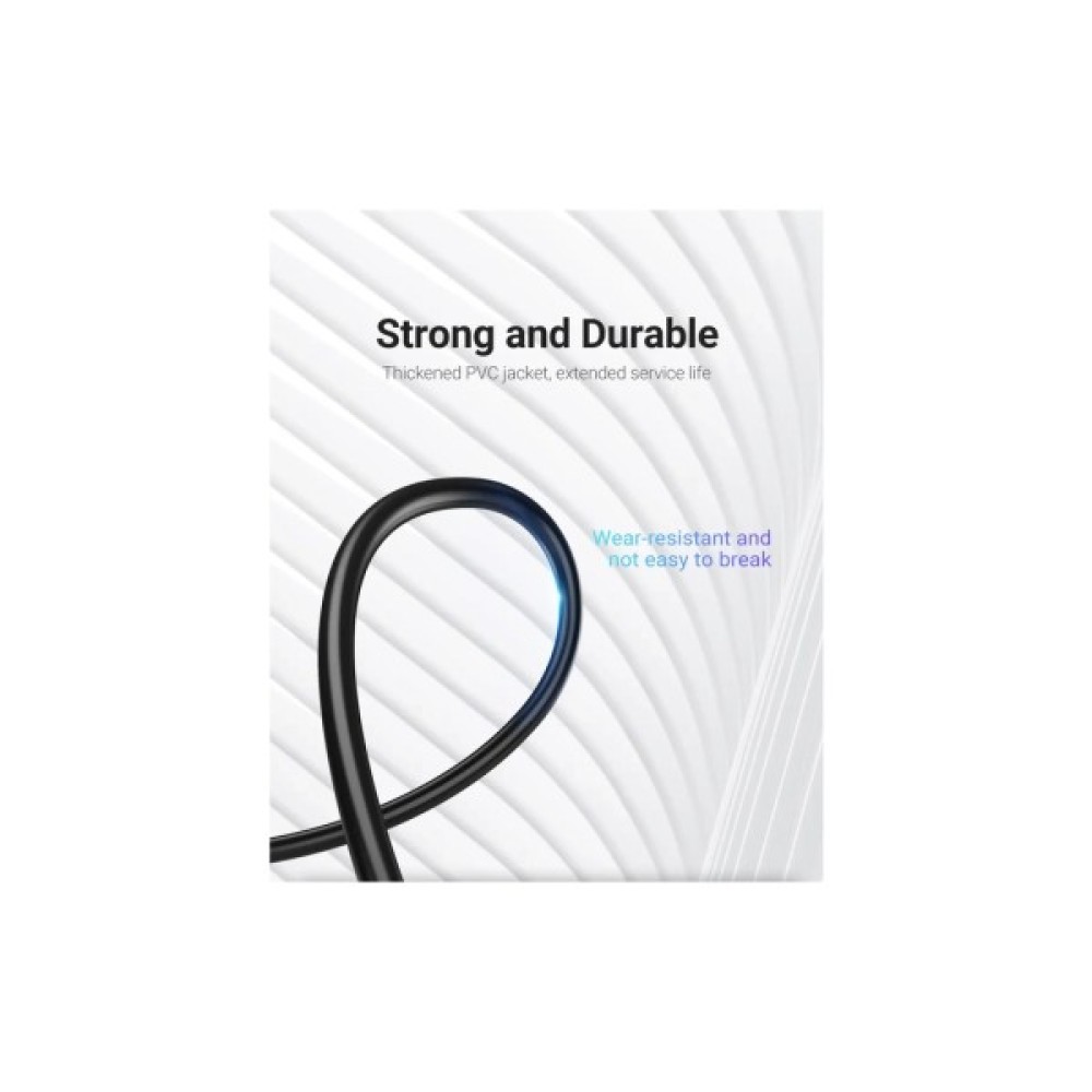 Посилена зносостійкість та ергономіка: Оболонка кабелю виготовлена з якісного потовщеного ПВХ (полівінілхлориду), який відзначається гнучкістю та стійкістю до розривів. Особливу увагу приділено місцям з'єднання дроту з конектором: подовжений до 11 мм посилений захист (хвостовик) запобігає переламуванню та розтріскуванню в найбільш вразливих зонах при частому згинанні, а ергономічна форма конекторів полегшує підключення та відключення кабелю.