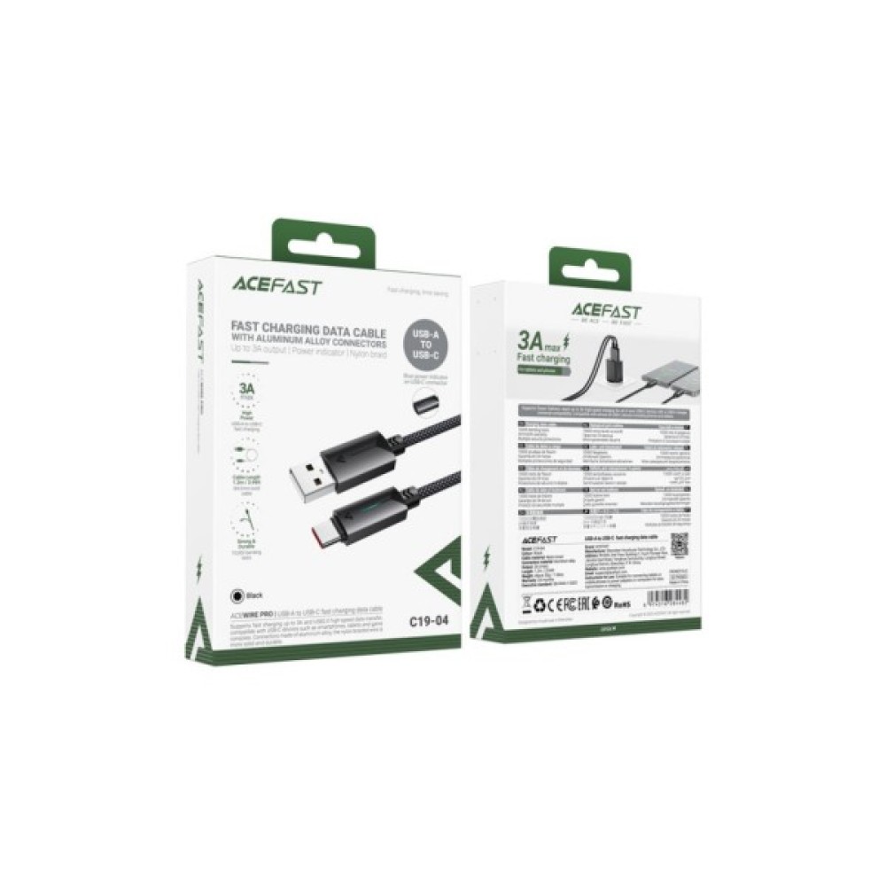 Acefast C19-04 USB 2.0 AM-Type-C M - надійний кабель для пристроїв із роз’ємом USB-C, зокрема ноутбуків, планшетів та смартфонів. Він забезпечує стабільне заряджання з зарядним струмом до 3А.