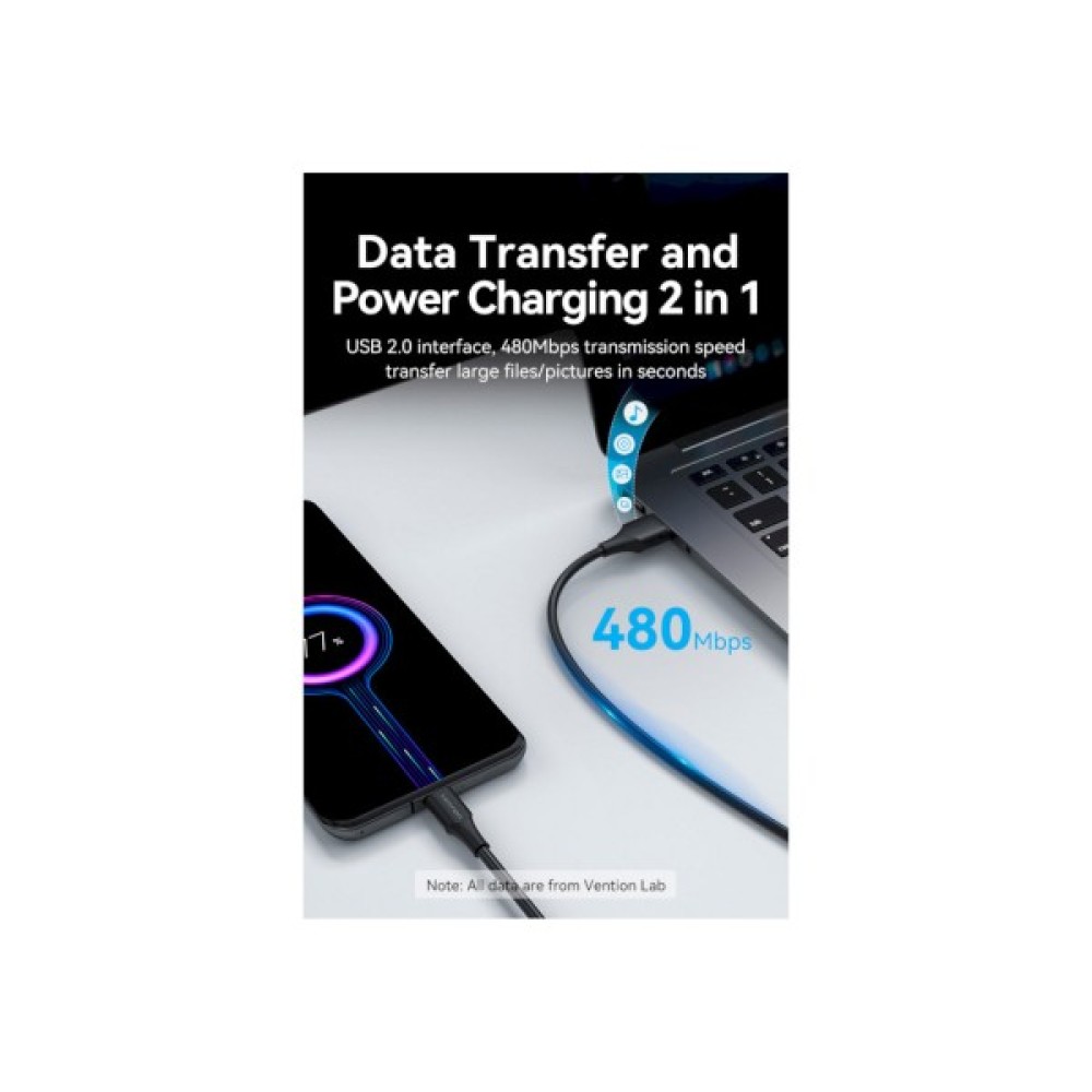 Дата кабель USB 2.0 AM to USB-C 1.5m 3.0A 18W PVC black Vention (CTHBG)