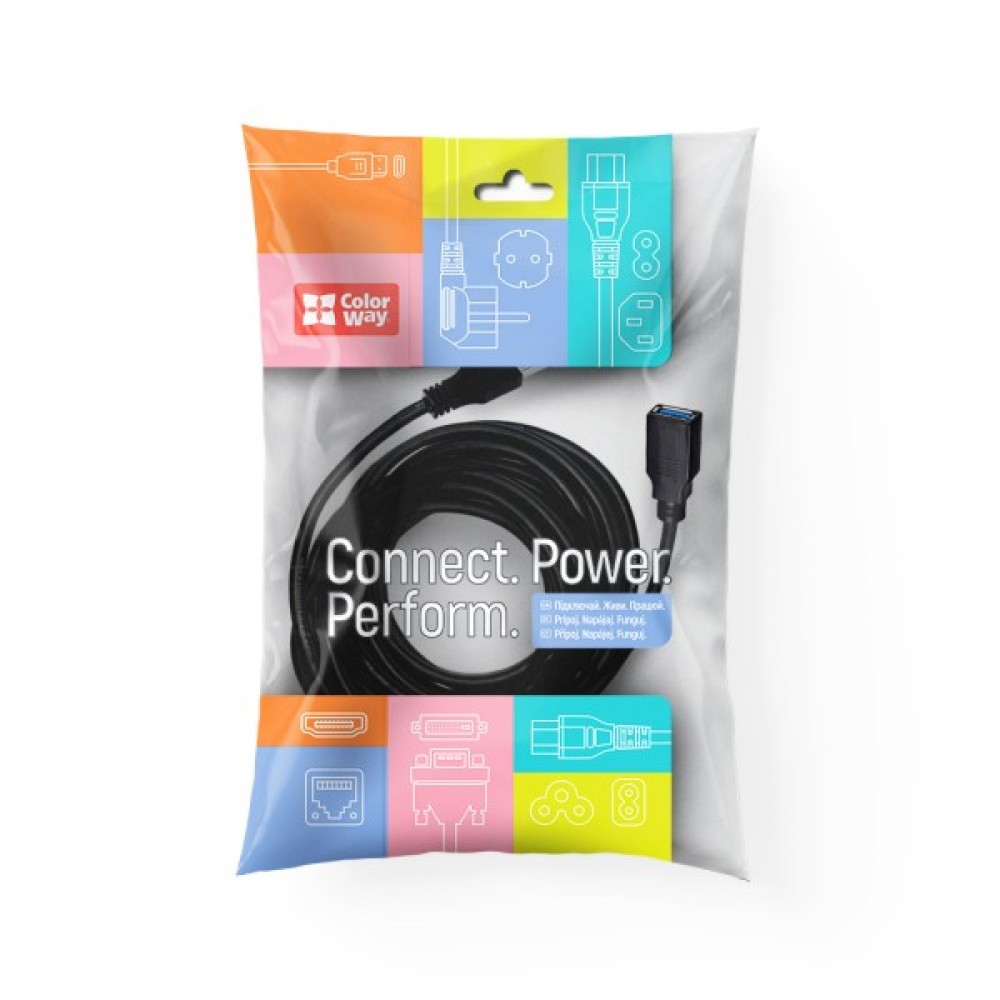 Кабель ColorWay USB 3.0 AM/AF — це високоякісний подовжувач, який дозволяє збільшити довжину з’єднання між пристроями з USB-A роз’ємами або забезпечити зручний доступ до USB-порту, якщо він розташований у важкодоступному місці. Ідеальне рішення для підключення периферійних пристроїв, таких як зовнішні жорсткі диски, флеш-накопичувачі, принтери, веб-камери, клавіатури, миші та інших USB-пристроїв.