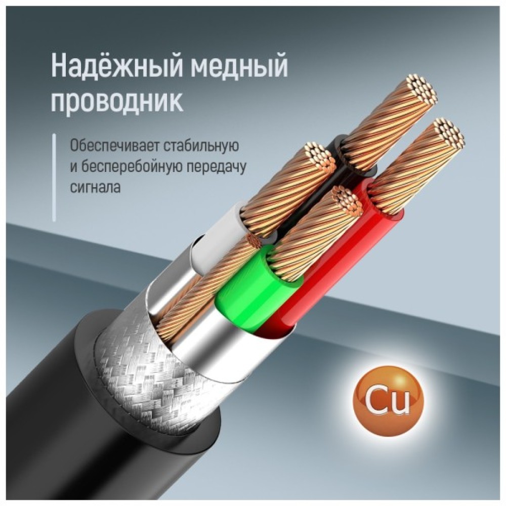 Мідний провідник гарантує надійний сигнал без втрат, а міцна та гнучка ПВХ-оболонка захищає кабель від пошкоджень, перегинів та зносу, забезпечуючи довговічність навіть при частому використанні.