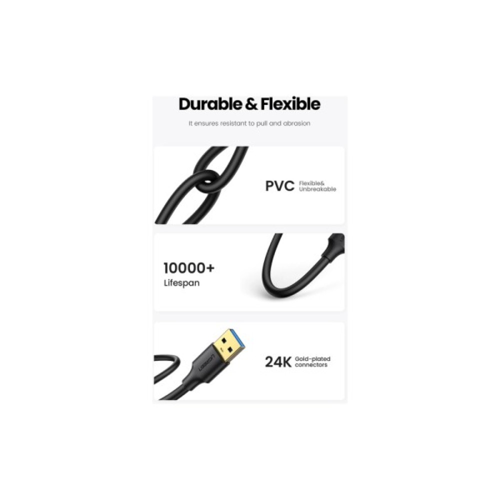 Кабель Ugreen US128 USB-A 3.0 1 м Чорний (10370) підключає периферійний пристрій USB з портом USB 3.0 типу A до комп'ютера для швидкої передачі файлів. Він діє як розширення для з'єднання USB 3.0.