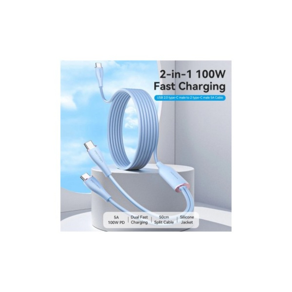 Дата кабель USB-C to 2xUSB-C 1.5m 5.0A Silicone Type Blue Vention (CTMSG)