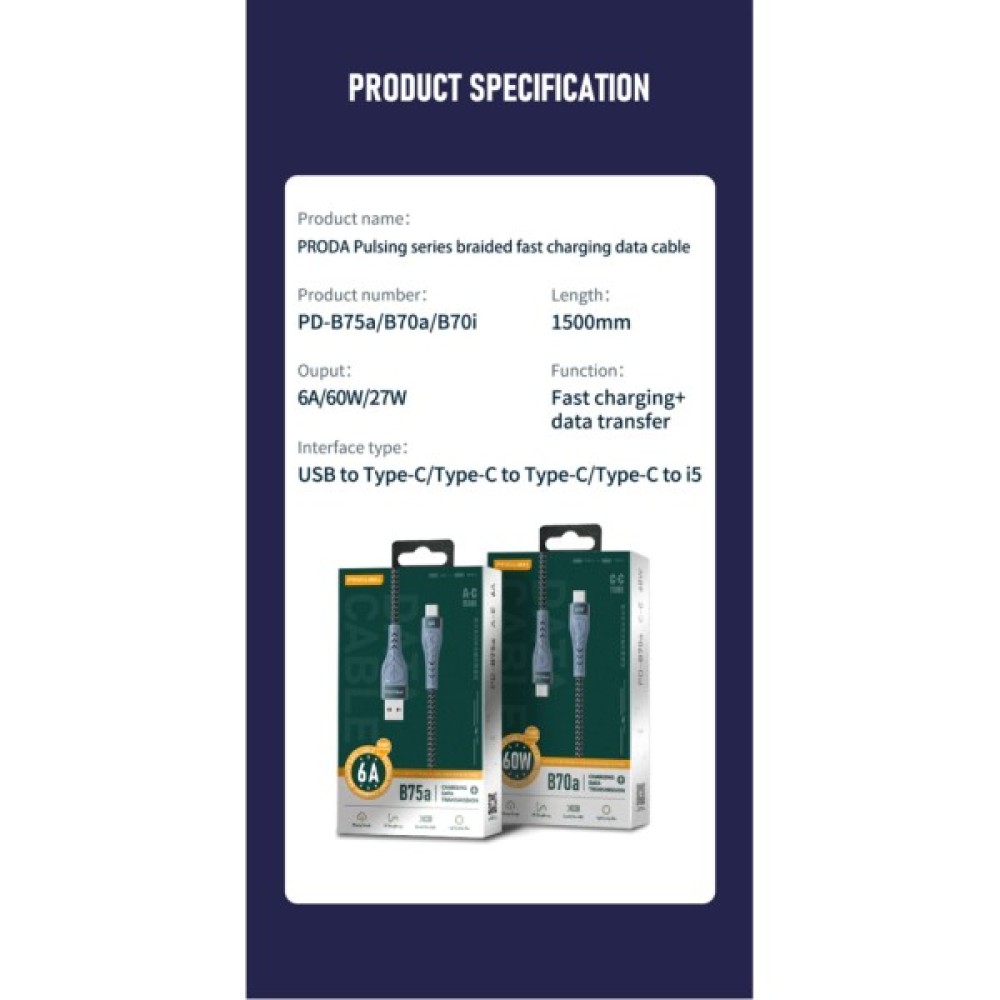 Переваги кабелю Proda PD-B70i Type-C для Lightning Pulsing Fast Charging: